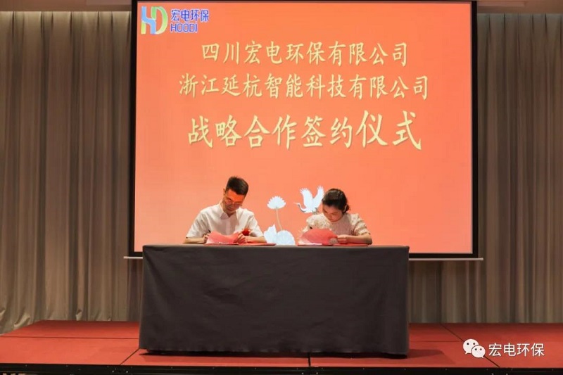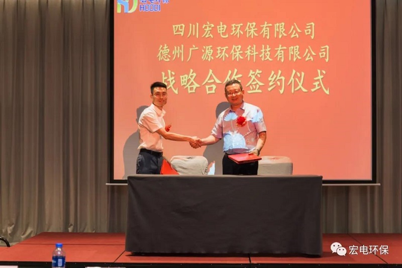 揭牌儀式后,四川宏電環(huán)保有限公司分別與德州廣源環(huán)保科技有限公司、江西正合環(huán)保集團(tuán)有限公司、浙江延杭智能科技有限公司進(jìn)行了戰(zhàn)略簽約,各方優(yōu)勢(shì)互補(bǔ),共同致力于四川環(huán)保市場(chǎng)的開(kāi)拓發(fā)展。