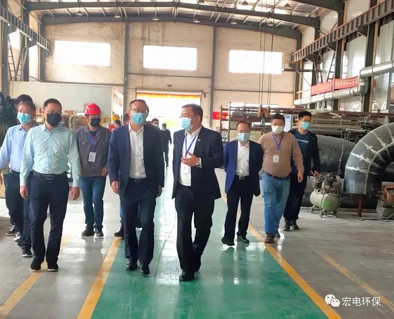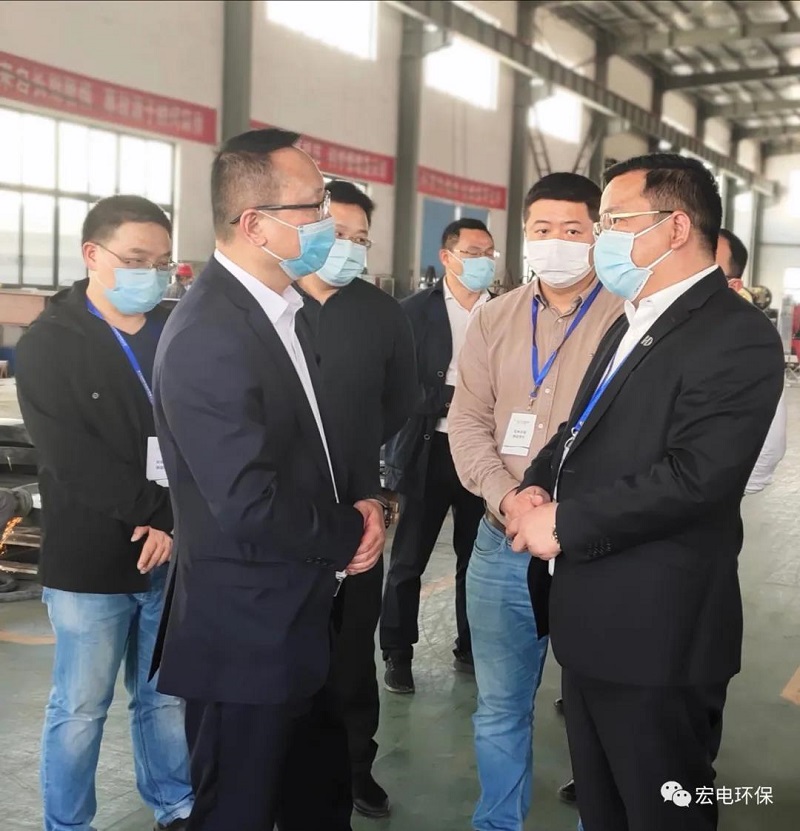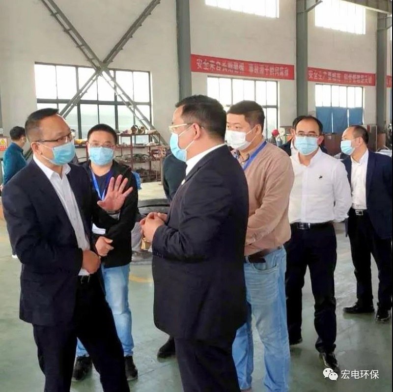 2020年4月28日下午,在統籌推進疫情防控和經濟社會發展的關鍵階段,新當選的江山市王光華市長率領市府辦、經信局、財政局、科技局、金融服務中心、發改局、資規局、四都鎮等相關領導來到宏電環保江山制造基地考察,深入生產車間調研企業復工復產情況。宏電環保董事長鄒可興、副總裁張文廣、副總裁曾波濤等公司領導陪同參加調研接待。