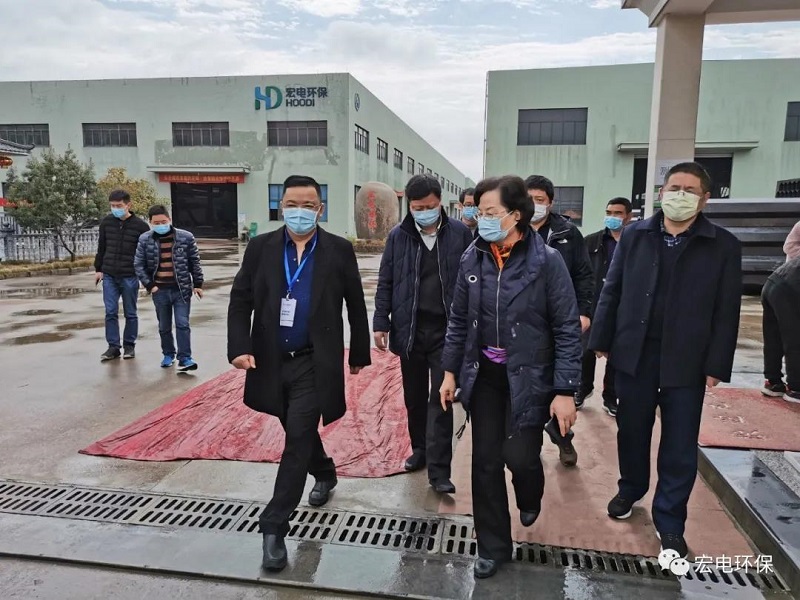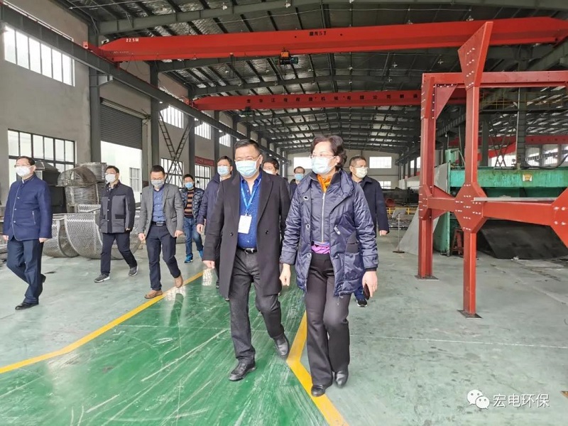 2020年39日上午,為深入了解疫情對民營企業的影響,全面收集企業復工復產存在的困難問題,進一步實現政府和企業雙向信息支撐,衢州市人大常委會主任居亞平帶隊蒞臨宏電環保對企業復工復產情況進行調研指導衢州市人大常委會黨組成員、機關黨組書記賴瑞洪,衢州市人大常委會副秘書長林偉民,江山市人大常委會黨組書記汪勝,江山市人大常委會副主任李培榮,江山市四都鎮黨委書記黃日忠,江山市四都鎮黨委副書記、鎮長毛金旺,四都鎮黨委副書記謝小娟等領導陪同走訪指導,宏電環保董事長鄒可興、江山基地裝備公司總經理曾波濤陪同接待并匯報疫情防控和復工復產相關工作。