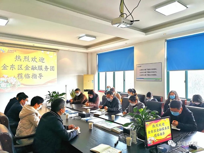 2020年3月9日上午,金東區金融辦主任熊健帶領龐大的金融服務團來到宏電環保,以“流動金融超市形式”助力企業復工復產,幫扶解決流動資金需求。金融服務團由中國農業銀行、金華銀行等四家銀行,兩家保險公司和一家企業融資管理服務公司組成,東孝街道部門領導吳棒陪同參加了服務活動。宏電環保執行總裁俞李偉、總部辦主任黃永征、財務中心主任洪明霞參加了此次金融對接。