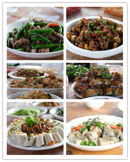 經過一個半小時的奮斗,飯桌上擺放了各種美味菜肴,看得人直流口水,帶給大家一種莫名的欣喜和自豪感,這是我們大家共同努力的成果——