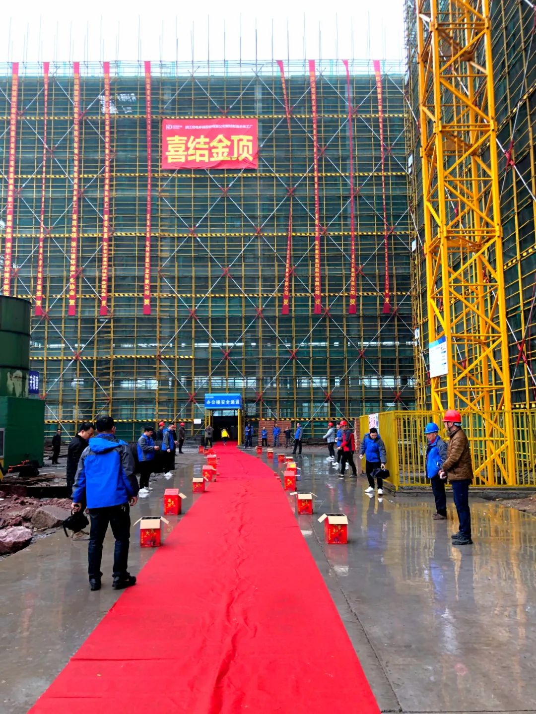 雨水綿綿,財運連連。2022年1月25日上午8:00,宏電環保智能制造“未來工廠”首期項目在施工現場舉行喜結金頂儀式。宏電環保董事長鄒可興率領公司(金華)總部各部門主管及員工代表及有關顧問、嘉賓朋友出席了結頂儀式,共同見證宏電環保這一具有重要意義的時刻。