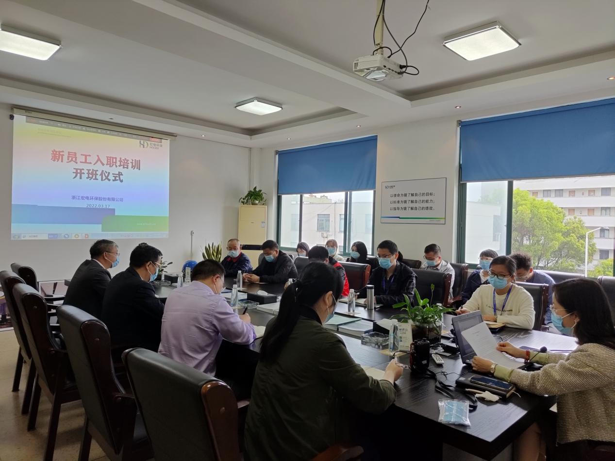 3月17日,“宏電環保”于總部會議室組織開展了“新員工入職培訓開班儀式”。“宏電環保”董事長鄒可興、副董事長張文廣、執行總裁俞李偉、副總裁章貞貞出席了開班儀式。考慮到疫情原因,采取了“線下”+“釘釘在線直播”相結合的方式,確保每位新員工都能參加入職培訓。“宏電環保”共有17位充滿朝氣、不畏挑戰的新員工參加了本次培訓。