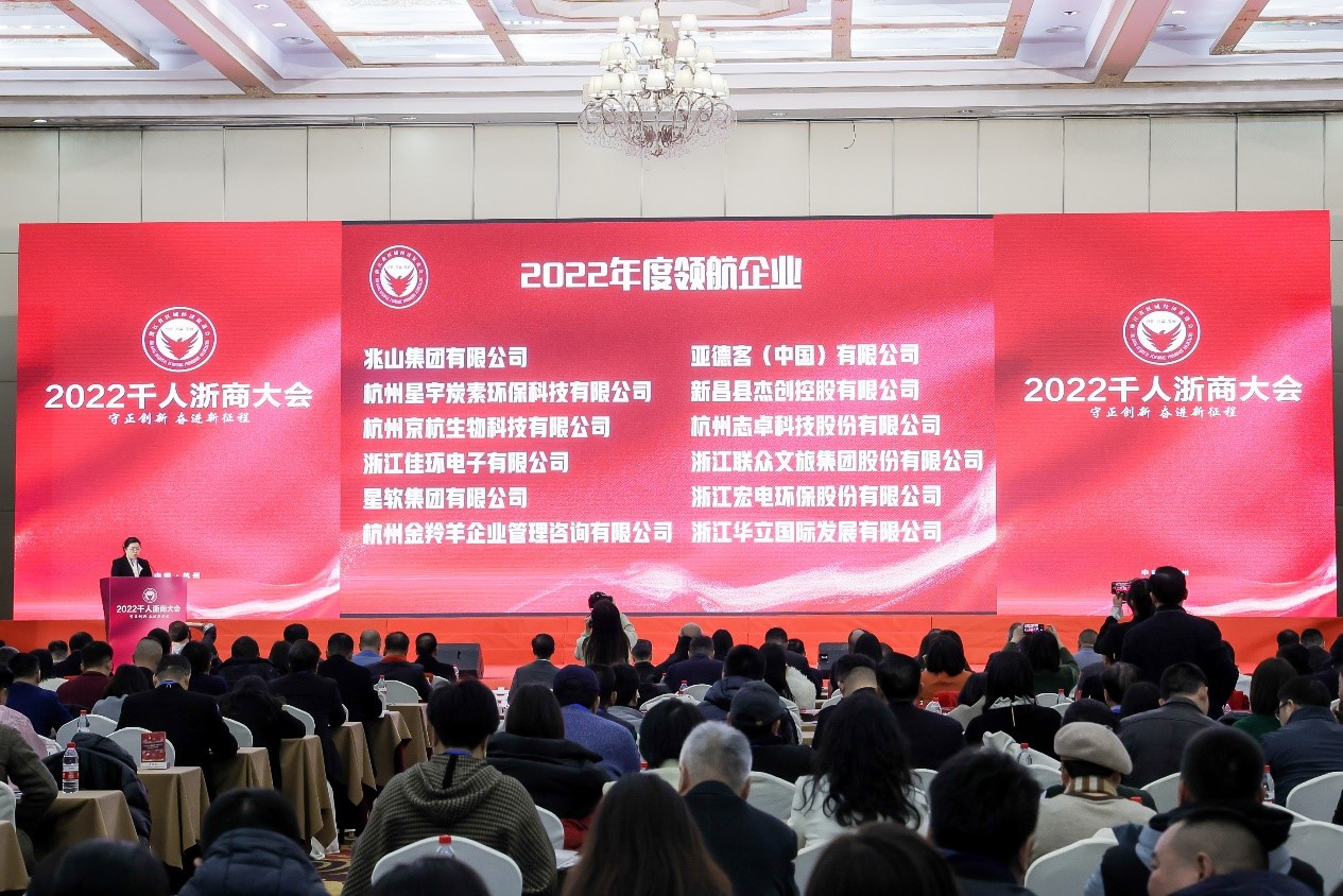 ????2023年2月23日,由浙江省區域經濟促進會(浙商促進會)主辦的“2022千人浙商大會”在杭州舉行,大會主題“守正創新 奮進新征程”。浙江省工商聯、浙商促進會以及多個相關部門領導和嘉賓出席了本次大會。千位浙商線上線下齊聚,圍繞當下新形勢,共謀“兩個健康”發展。