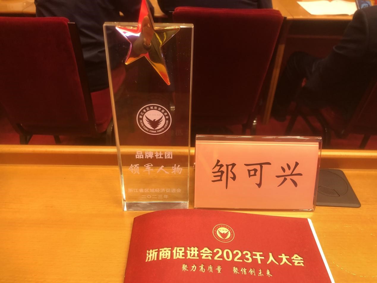 會上,鄒可興董事長作為頒獎嘉賓,為浙商促進會“2023年度品牌社團明星會員”頒獎,向這些優秀的浙商企業表示熱烈祝賀。同時,以其卓越的領導力和對社團發展做出的杰出貢獻,榮獲“2023年度品牌社團領軍人物”稱號,這是對他長期以來對社團發展的支持與貢獻的肯定。