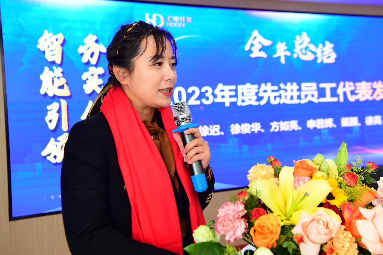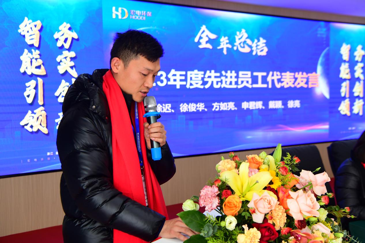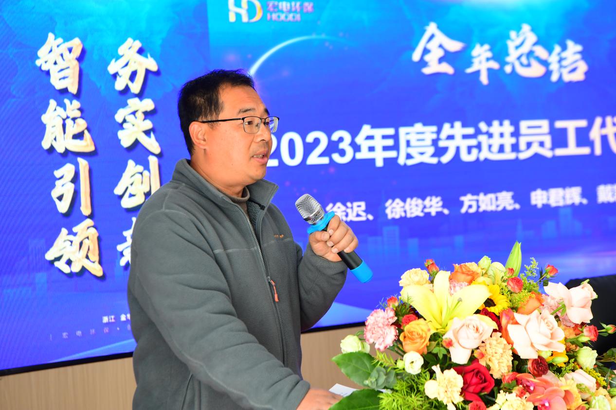會議在熱烈而莊重的氛圍中拉開了序幕,執行總裁俞李偉首先宣布了2023年度宏電環保集團評優結果的名單。在過去的一年里,眾多杰出的同事們憑借出色的業績和不懈的努力,為公司創造了不可估量的價值。他們是我們團隊的精英,是我們不斷向前的旗幟和標桿。我們深切期望這些優秀員工能夠繼續發揮典范作用,引領并激勵更多的同仁為公司的繁榮貢獻自己的力量。同時,我們也邀請了這些先進員工代表登臺,與我們分享他們寶貴的工作經驗和成長感悟。