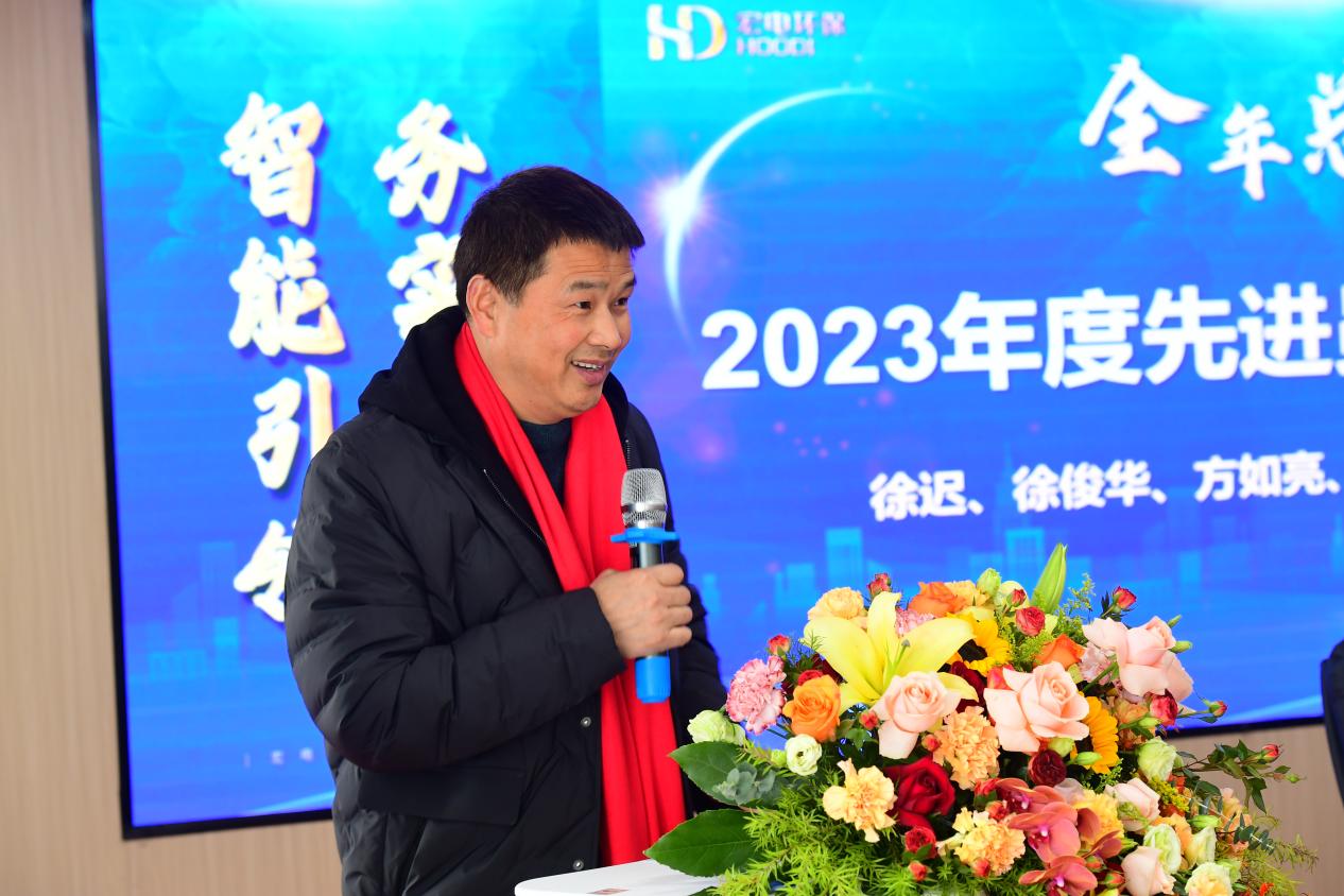 在最后的重要環節,董事長鄒可興對2023年的工作進行了全面總結,并對2024年的發展做出了詳細部署。在過去一年里,面對復雜多變的經濟形勢和環保行業日趨激烈的競爭,董事長鄒可興以卓越的領導力和前瞻性的戰略思維,引領宏電環保集團穩步前行,成功克服了諸多挑戰。他對全體員工過去一年的辛勤工作和取得的顯著成績表示了衷心感謝,并深刻分析了公司在發展中遇到的問題與困難,提出了切實可行的解決方案和明確的發展策略。他強調,2023年我們超額完成合同額等各項經營指標,取得的成就有目共睹,我們以實際行動踐行了環保理念,積極承擔了社會責任,為行業的可持續發展做出了積極貢獻。