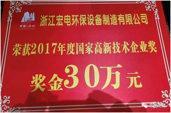 “宏電環(huán)保”旗下全資子公司浙江宏電環(huán)保設(shè)備制造有限公司,在2013年由江山市政府招商引資落戶到江山四都機(jī)電工業(yè)園區(qū),被列入江山市重點(diǎn)建設(shè)項(xiàng)目。此次榮獲江山市“2017年度高新技術(shù)企業(yè)獎(jiǎng)”,這是對(duì)“宏電環(huán)保”多年來堅(jiān)持科技創(chuàng)新企業(yè)發(fā)展的肯定,也是江山市政府對(duì)“宏電環(huán)保”關(guān)愛和鼓勵(lì)。