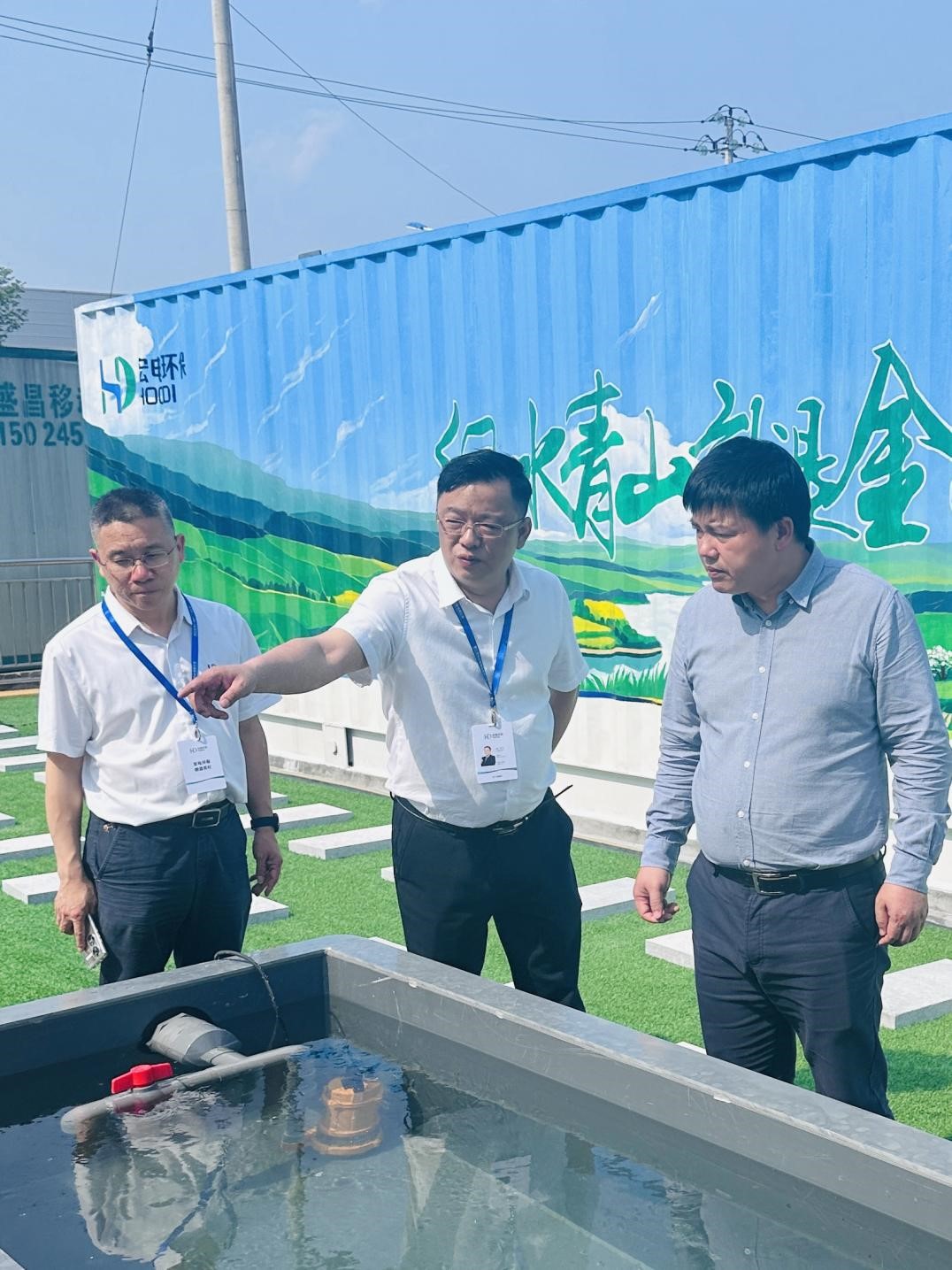 在鄒可興董事長的引領下,呂賢主席一行首先現場觀摩了宏電環保最新研發的“農村生活污水治理新技術及資源化綜合利用”項目。該項目創新性地提出農村生活污水資源再利用方案,旨在大幅減少水資源的浪費,并推動鄉村環境的持續改善。