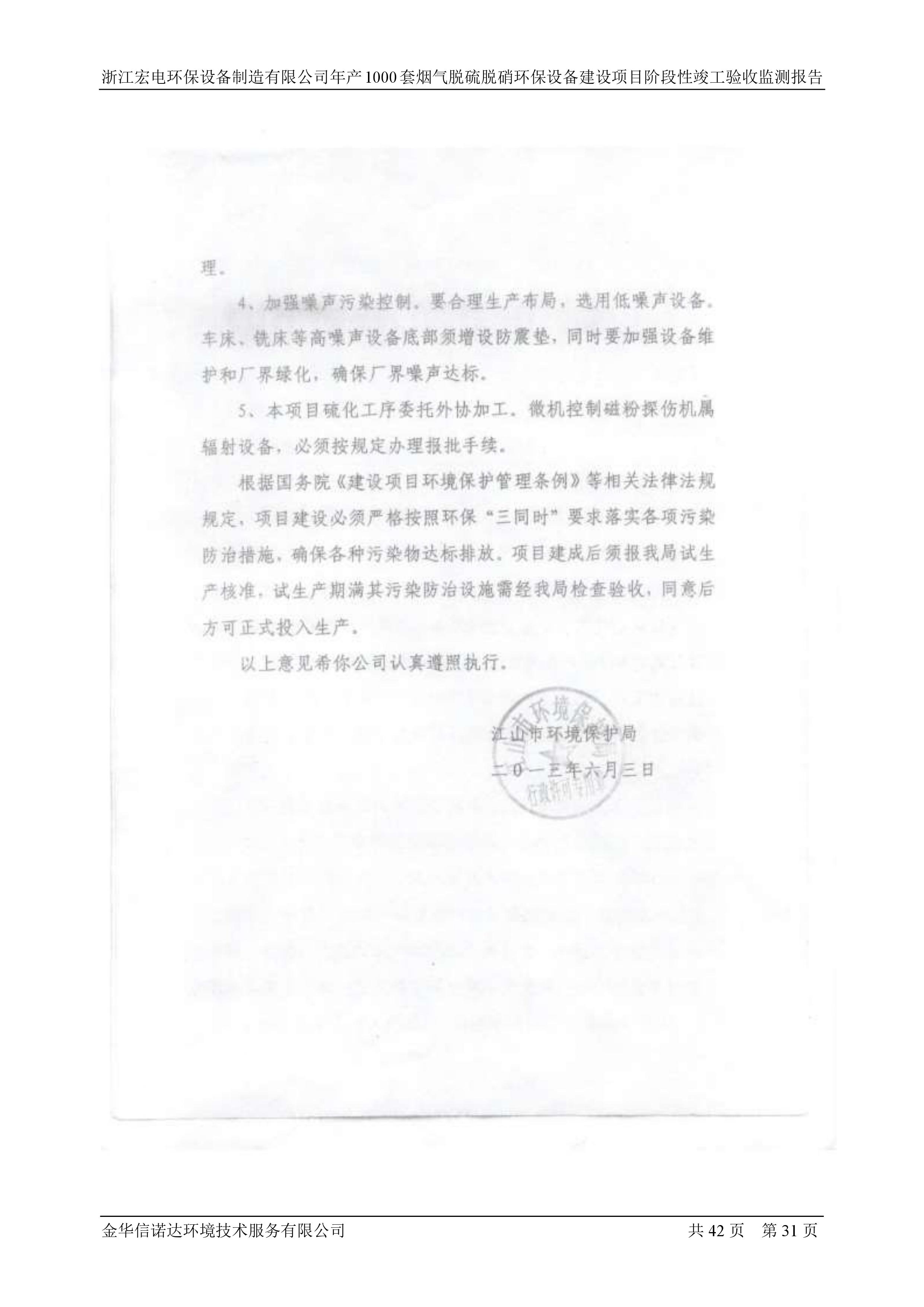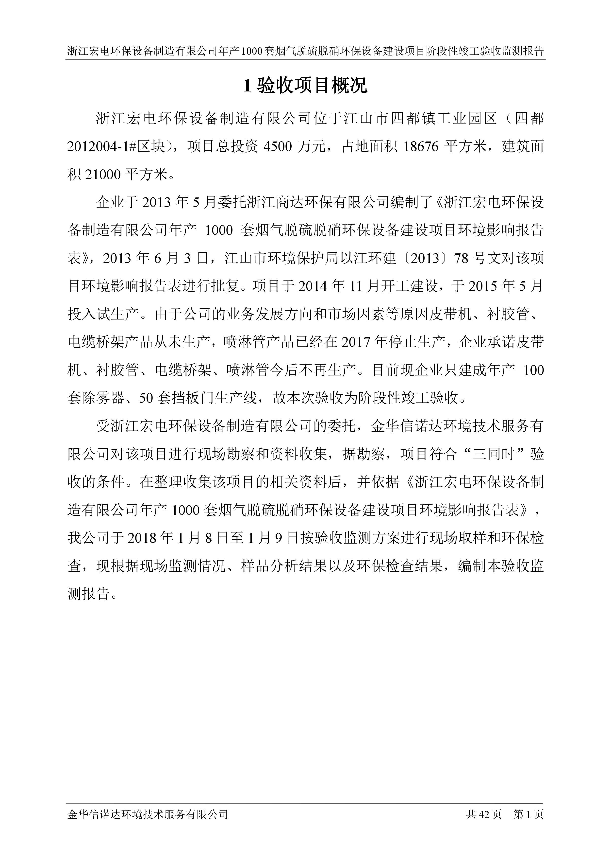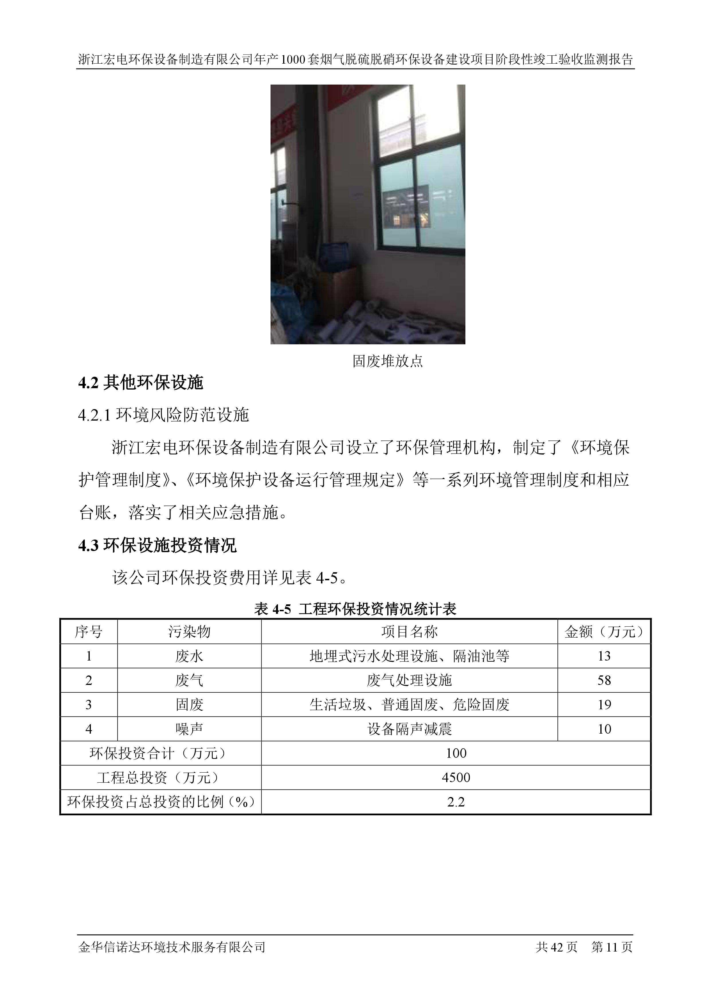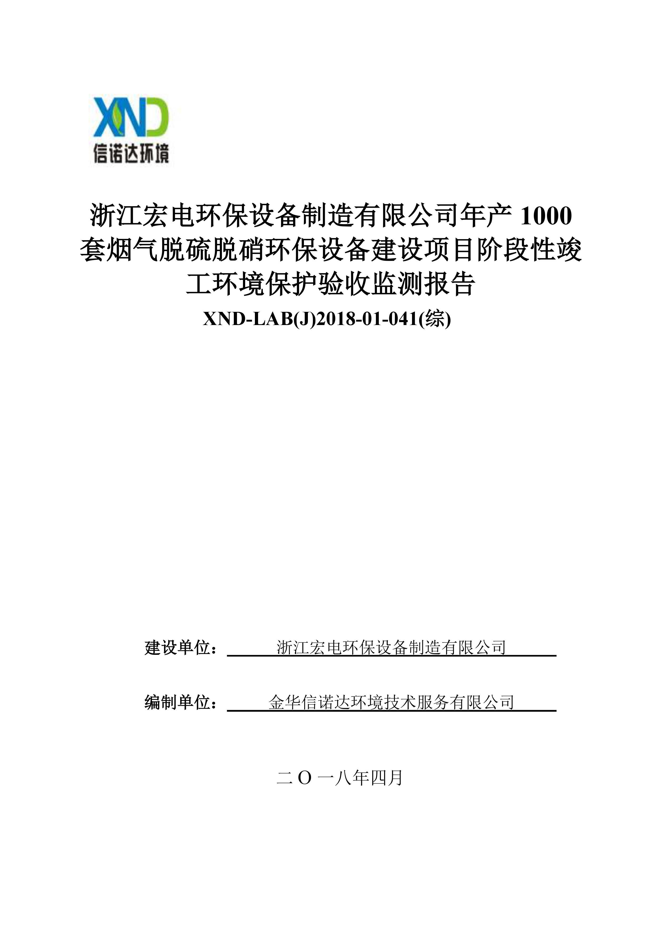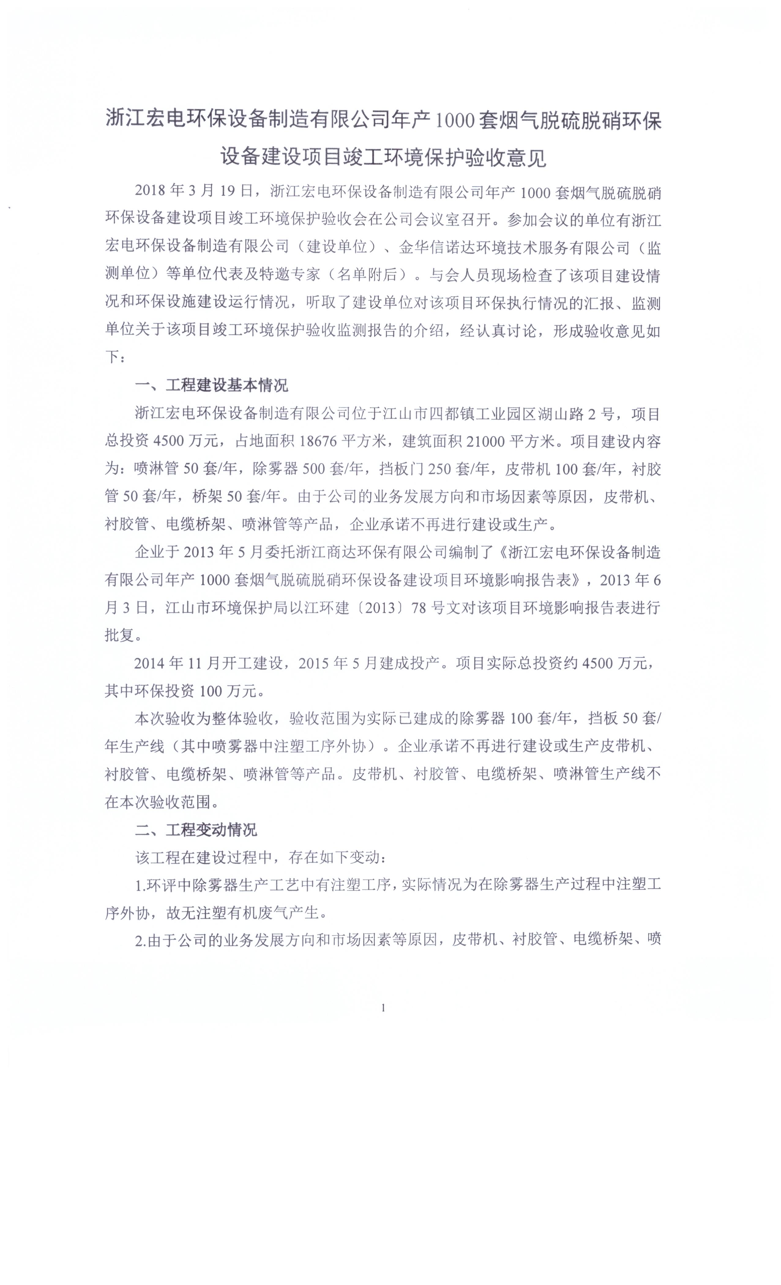 浙江宏電環保設備制造有限公司年產1000套煙氣脫硫脫硝環保設備建設項目竣工環境保護驗收意見公示