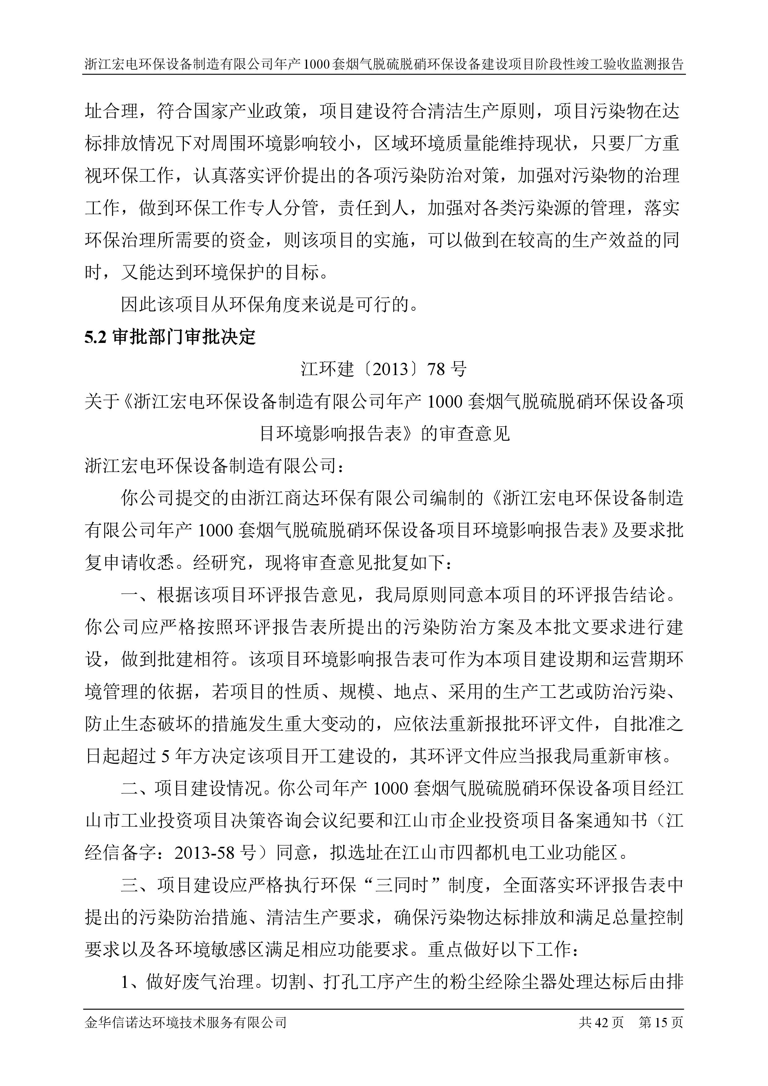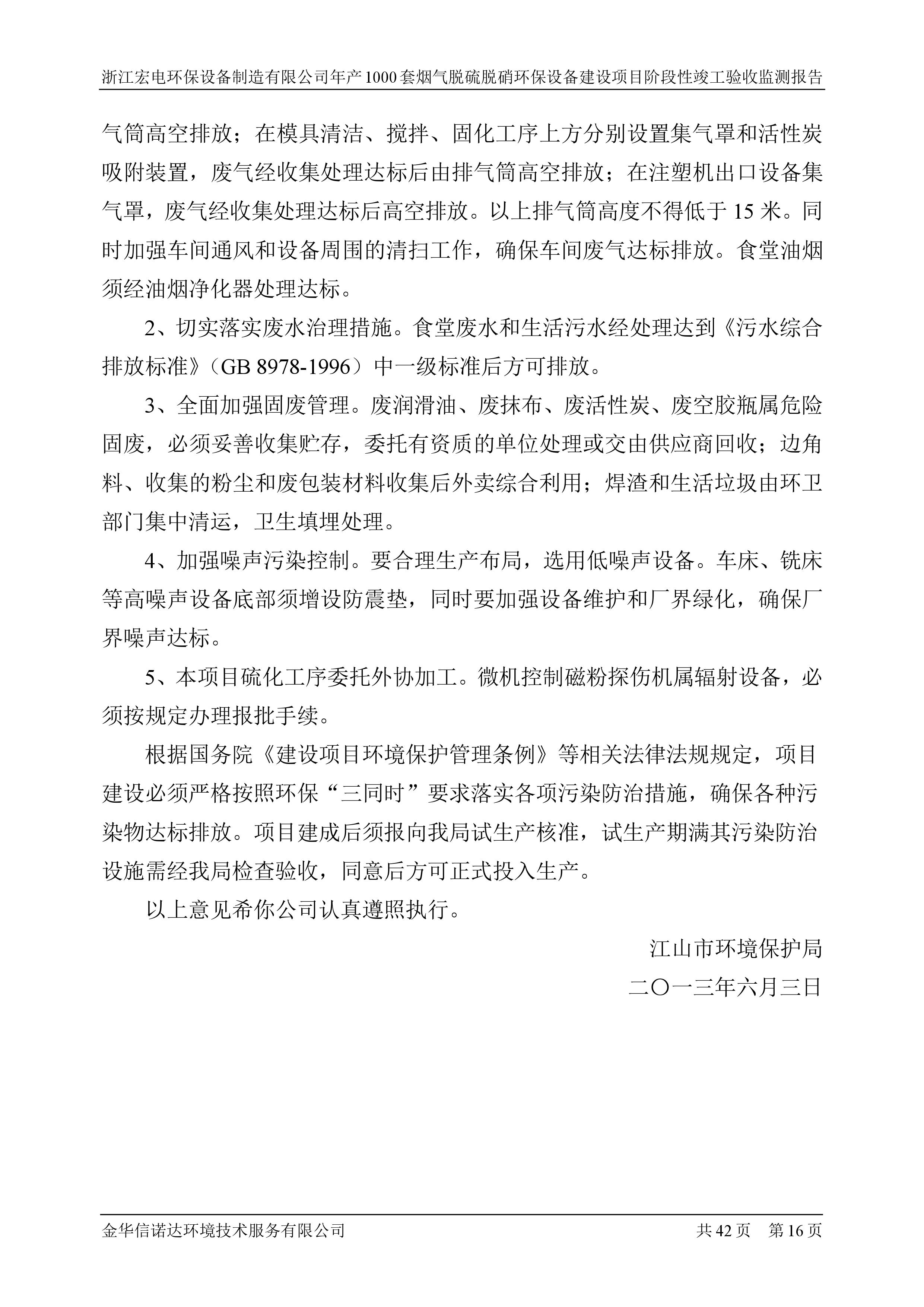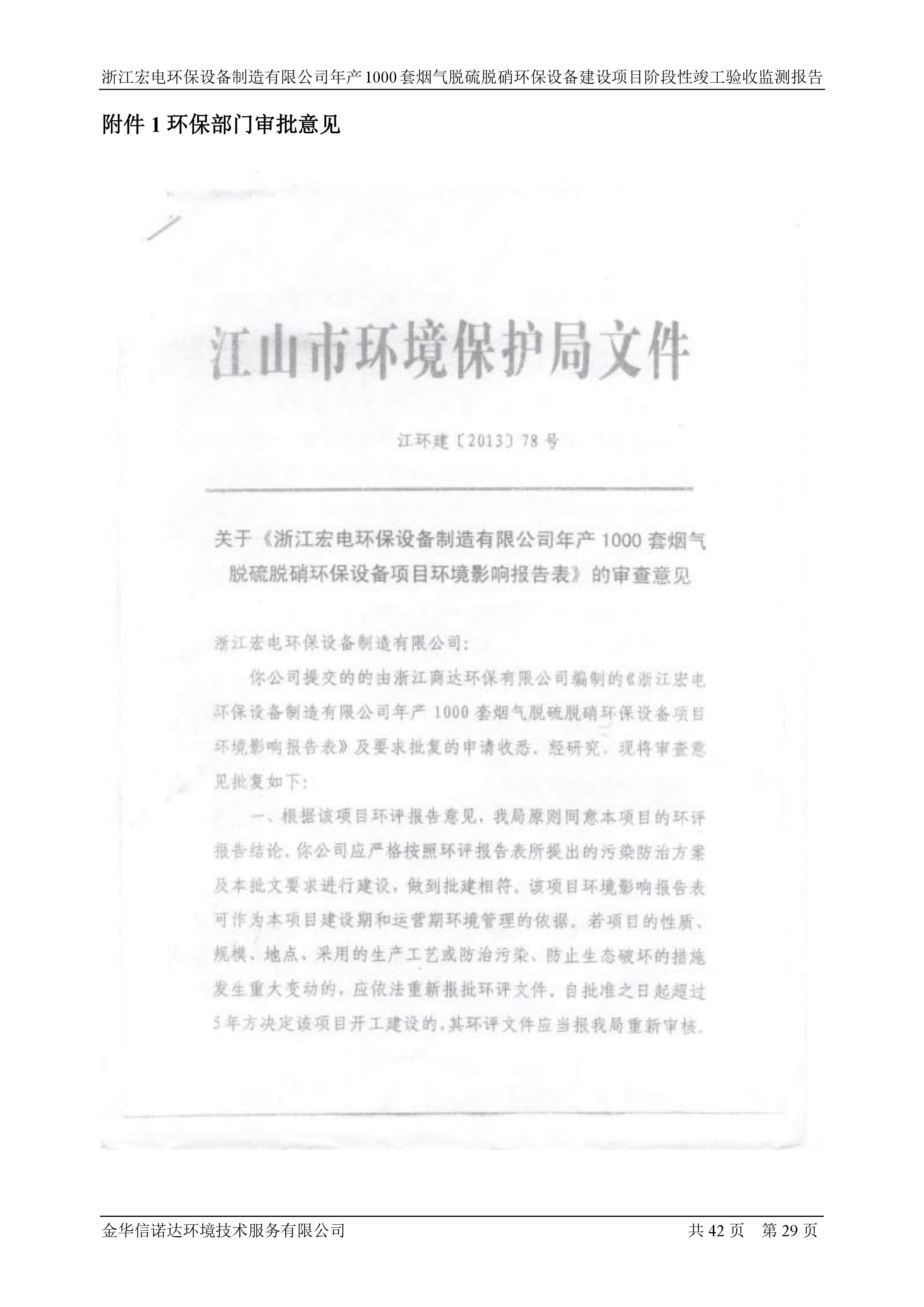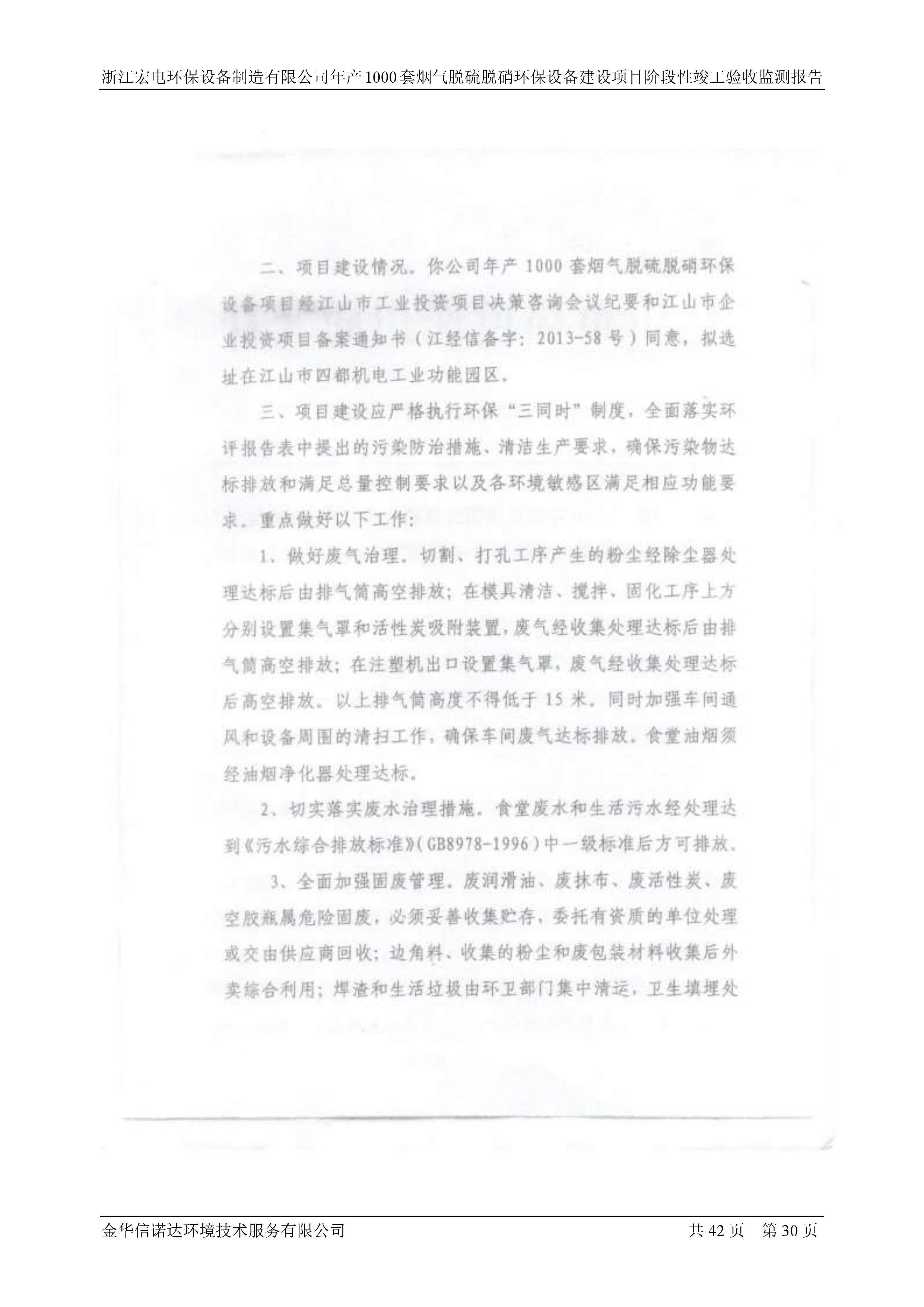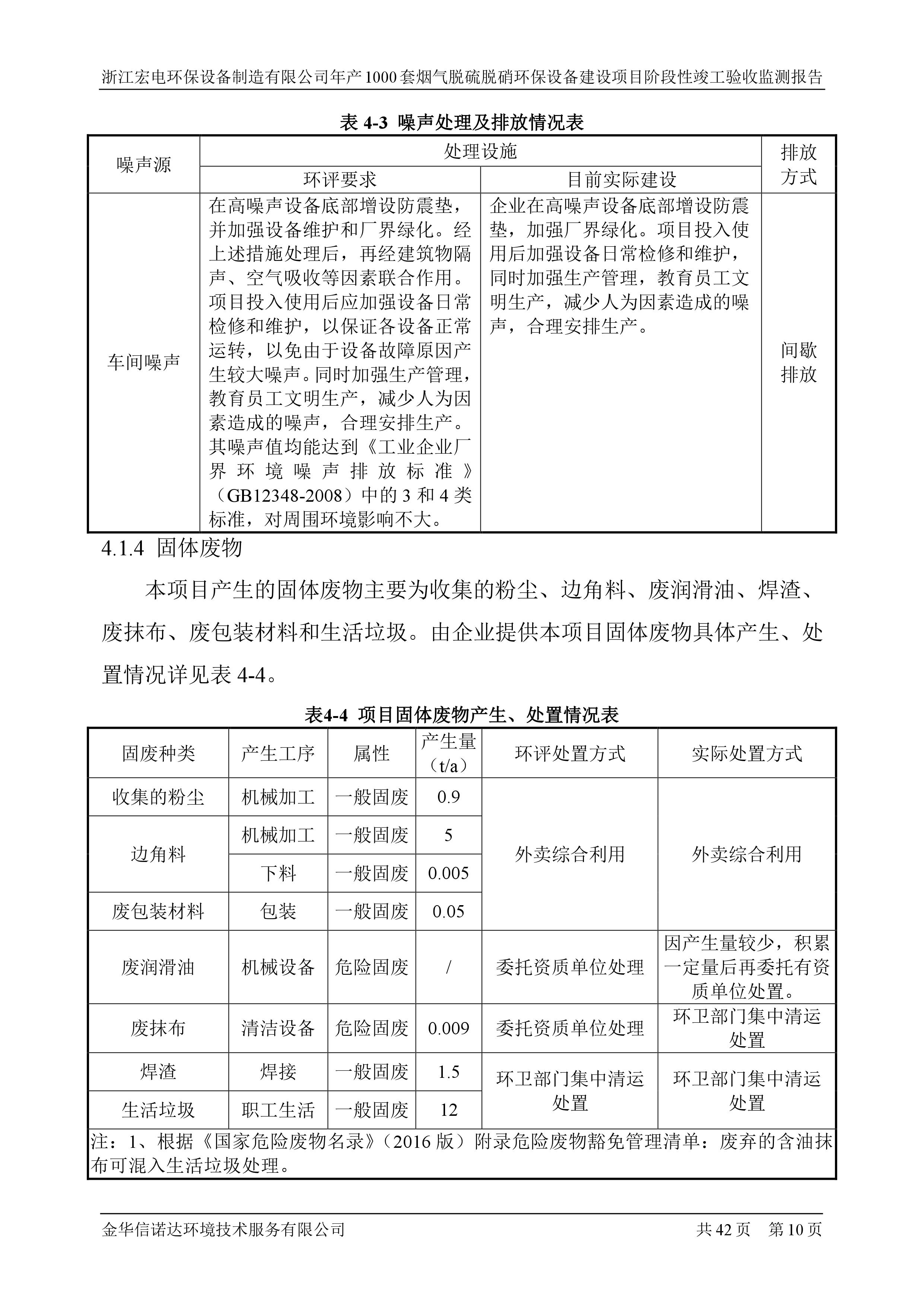 浙江宏電環保設備制造有限公司年產1000套煙氣脫硫脫硝環保設備建設項目竣工環境保護驗收意見公示