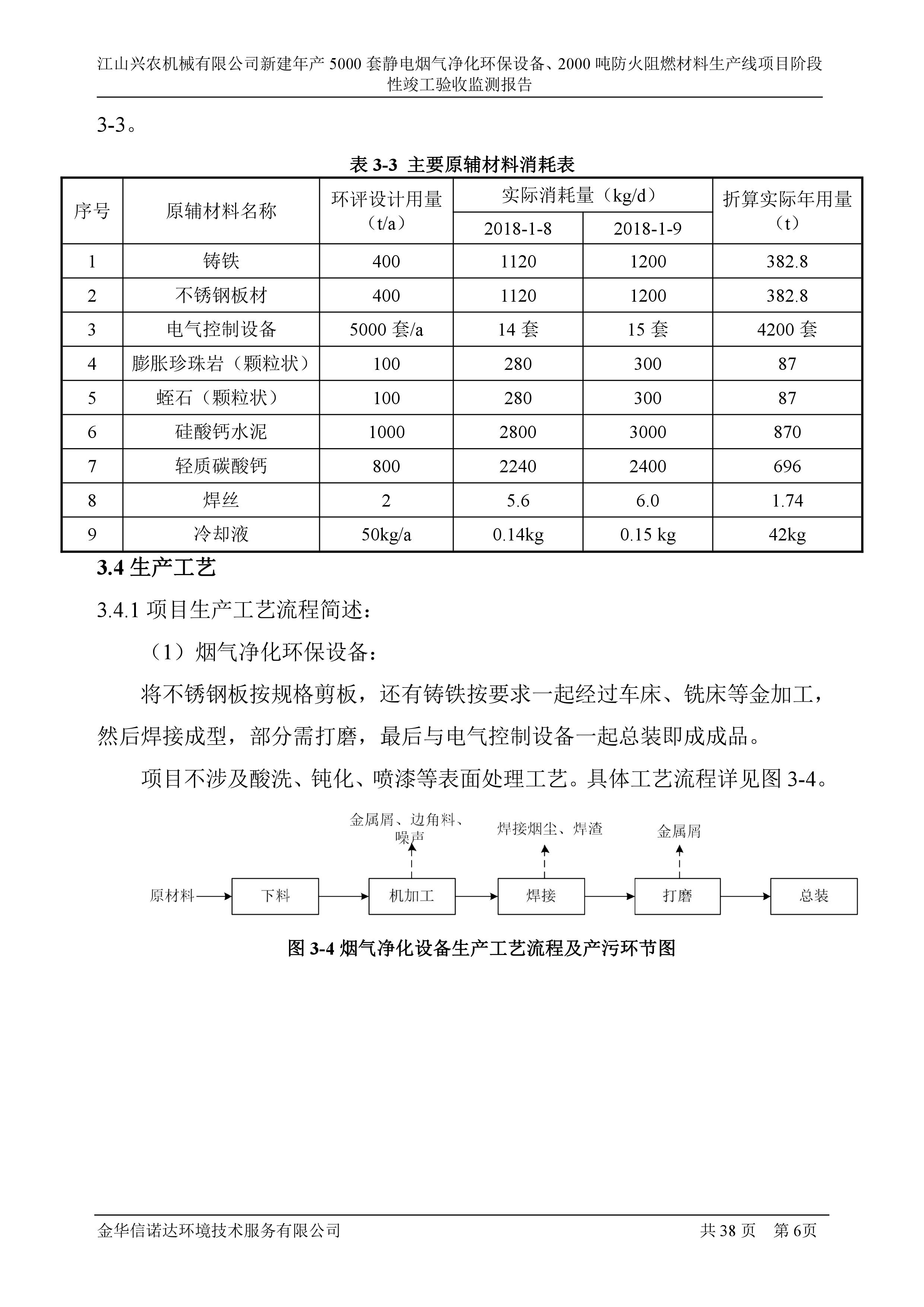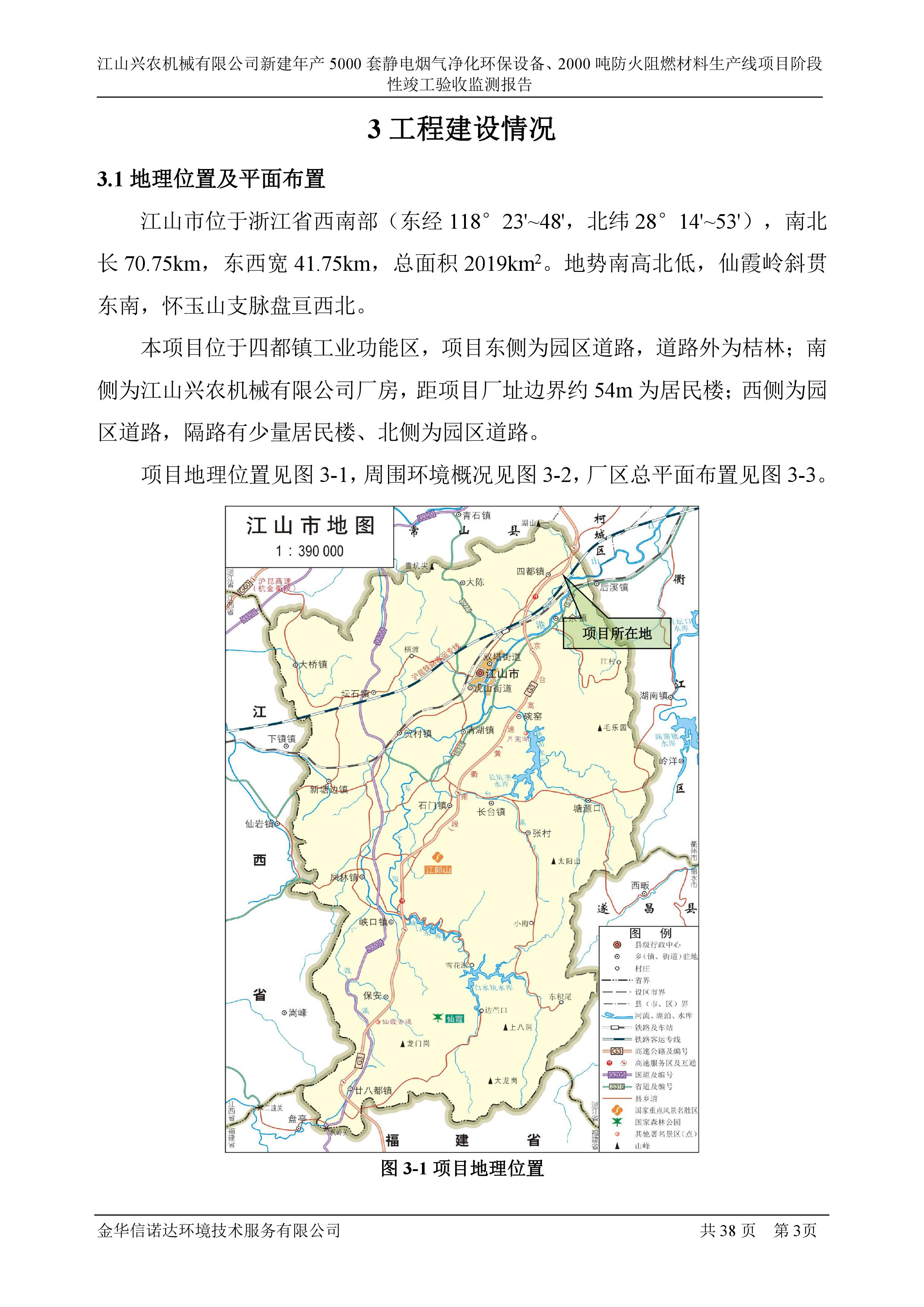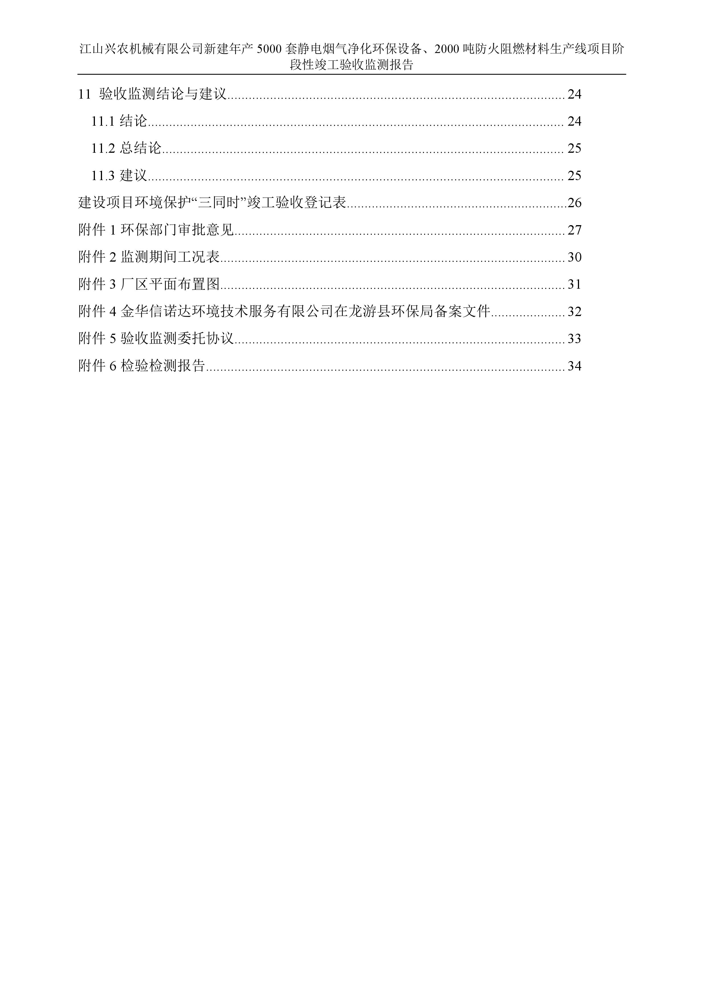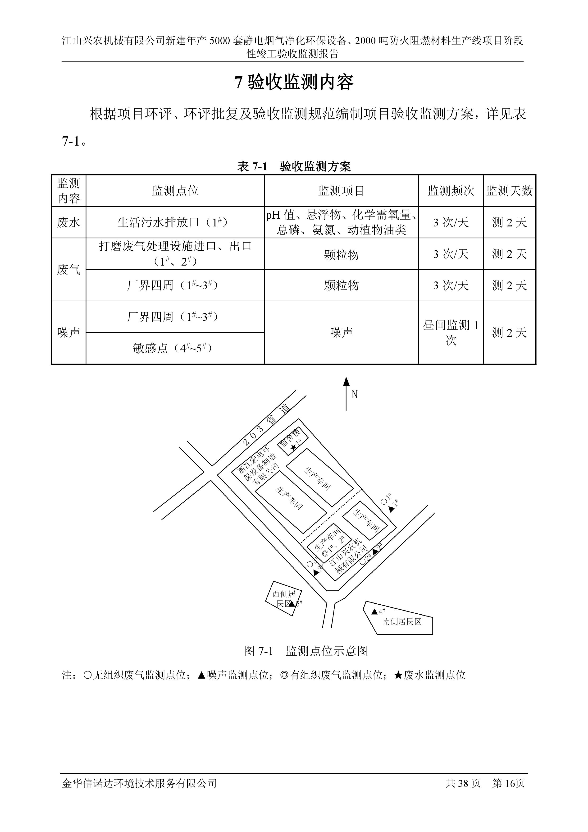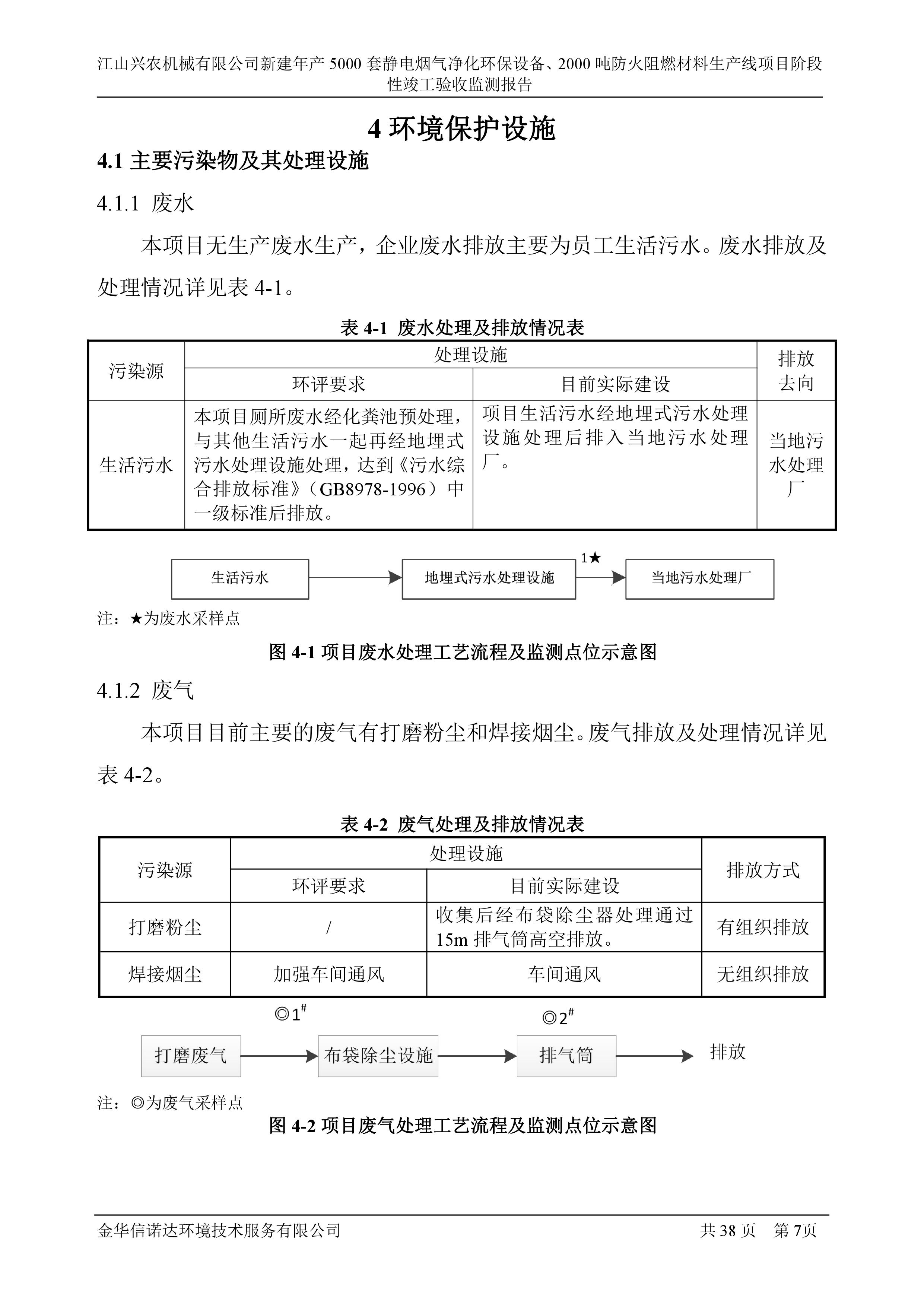 江山興農機械有限公司年產5000套靜電煙氣凈化環保設備、2000噸防火阻燃材料生產線項目階段性竣工環境保護驗收監測報告公示
