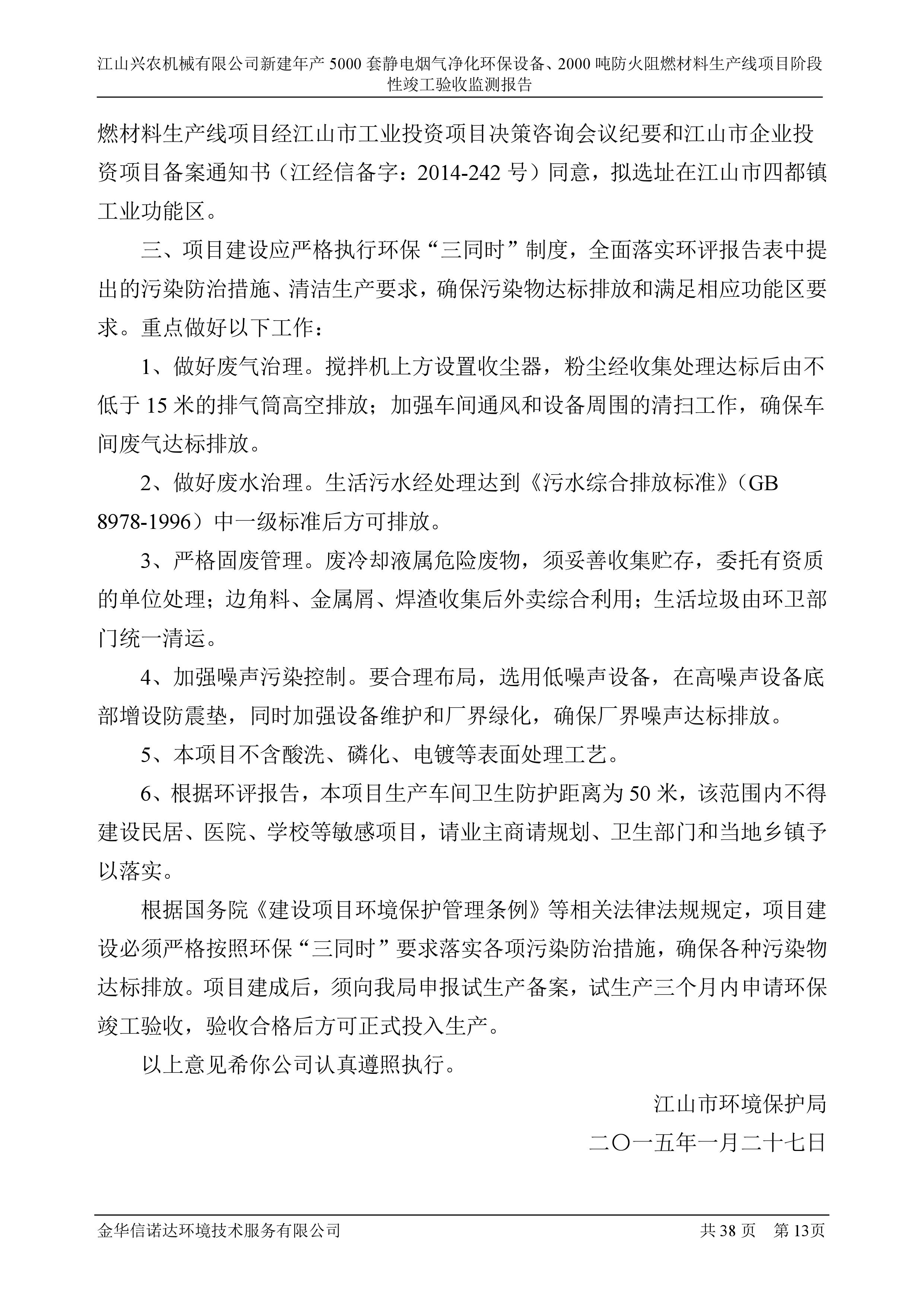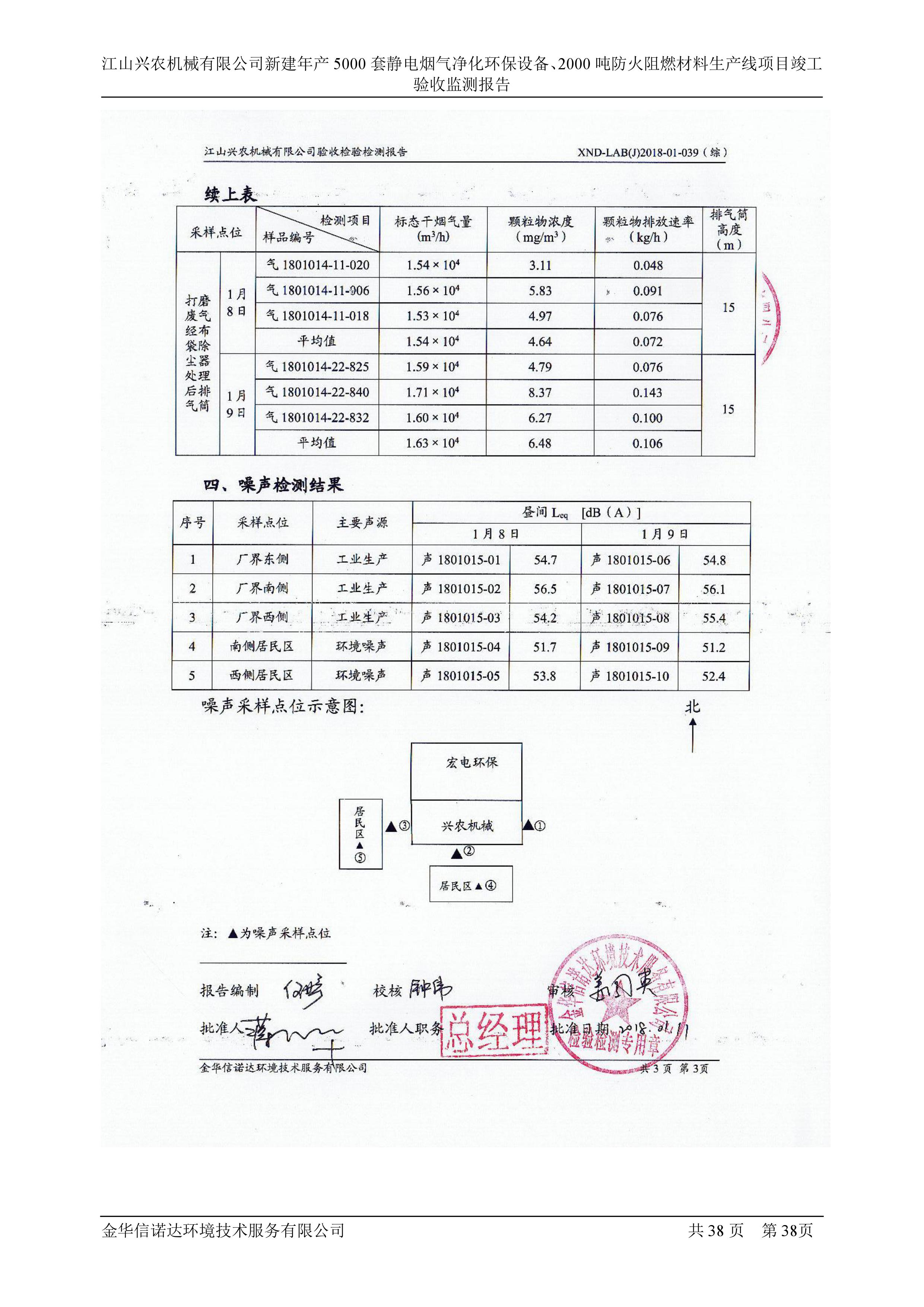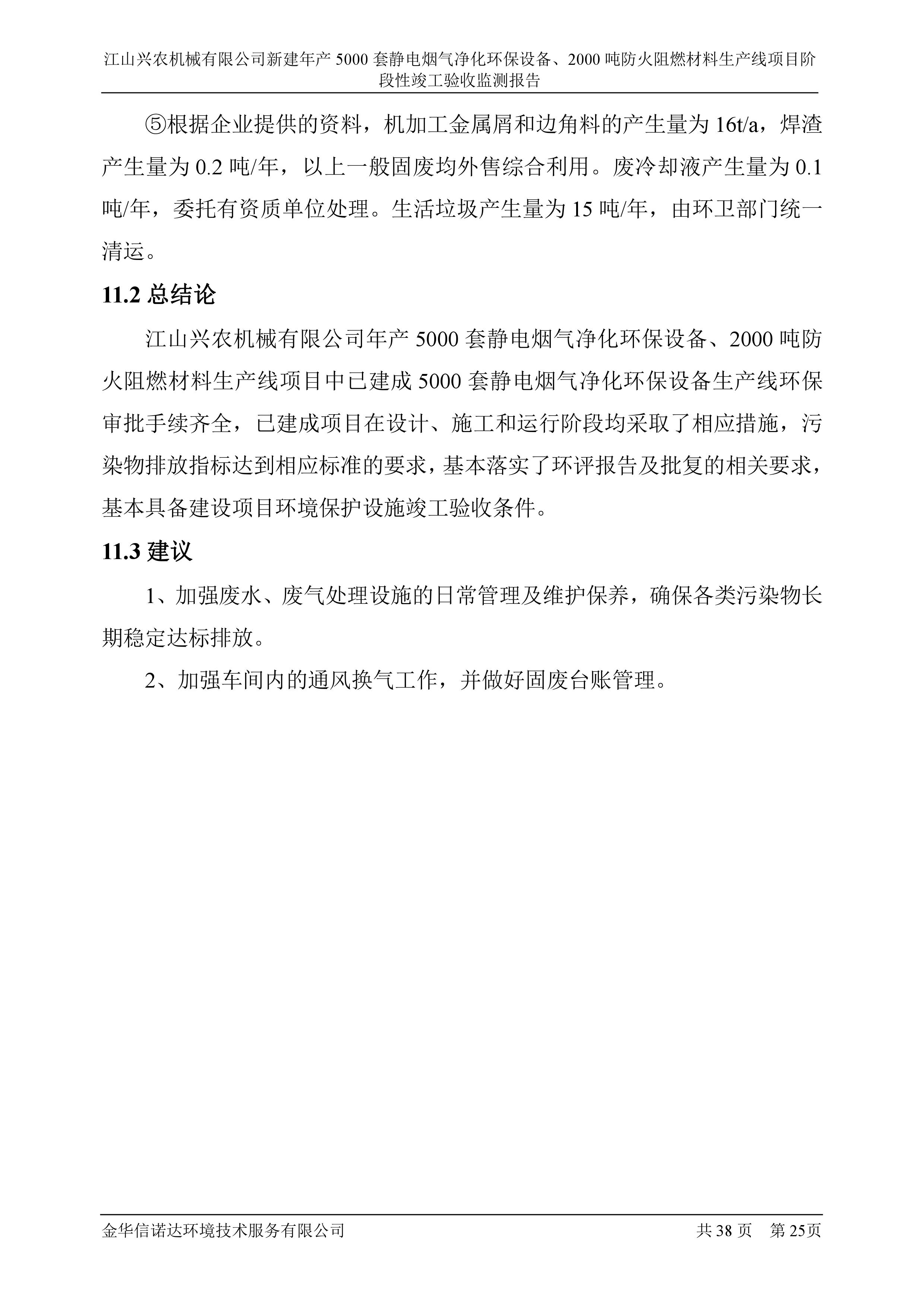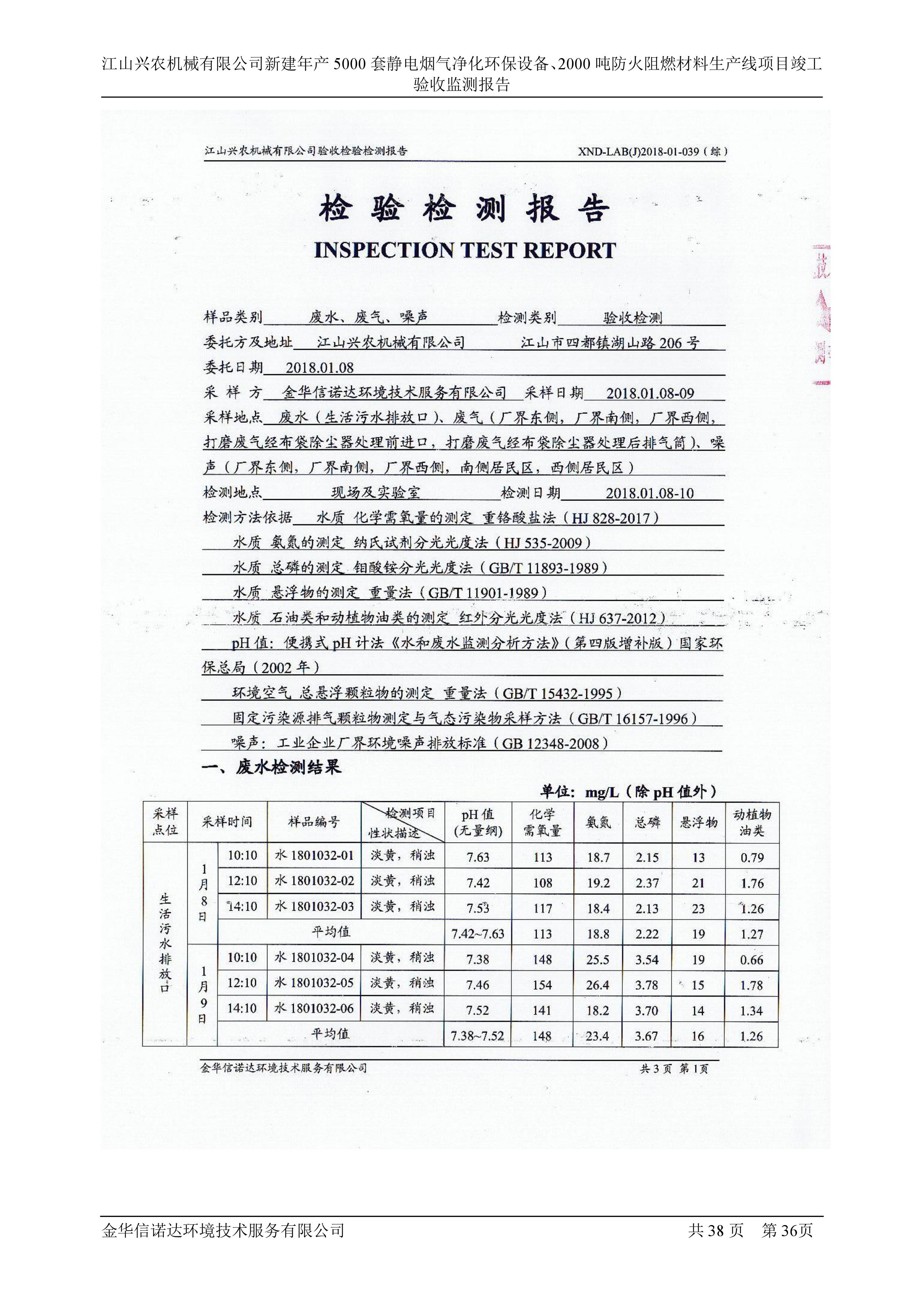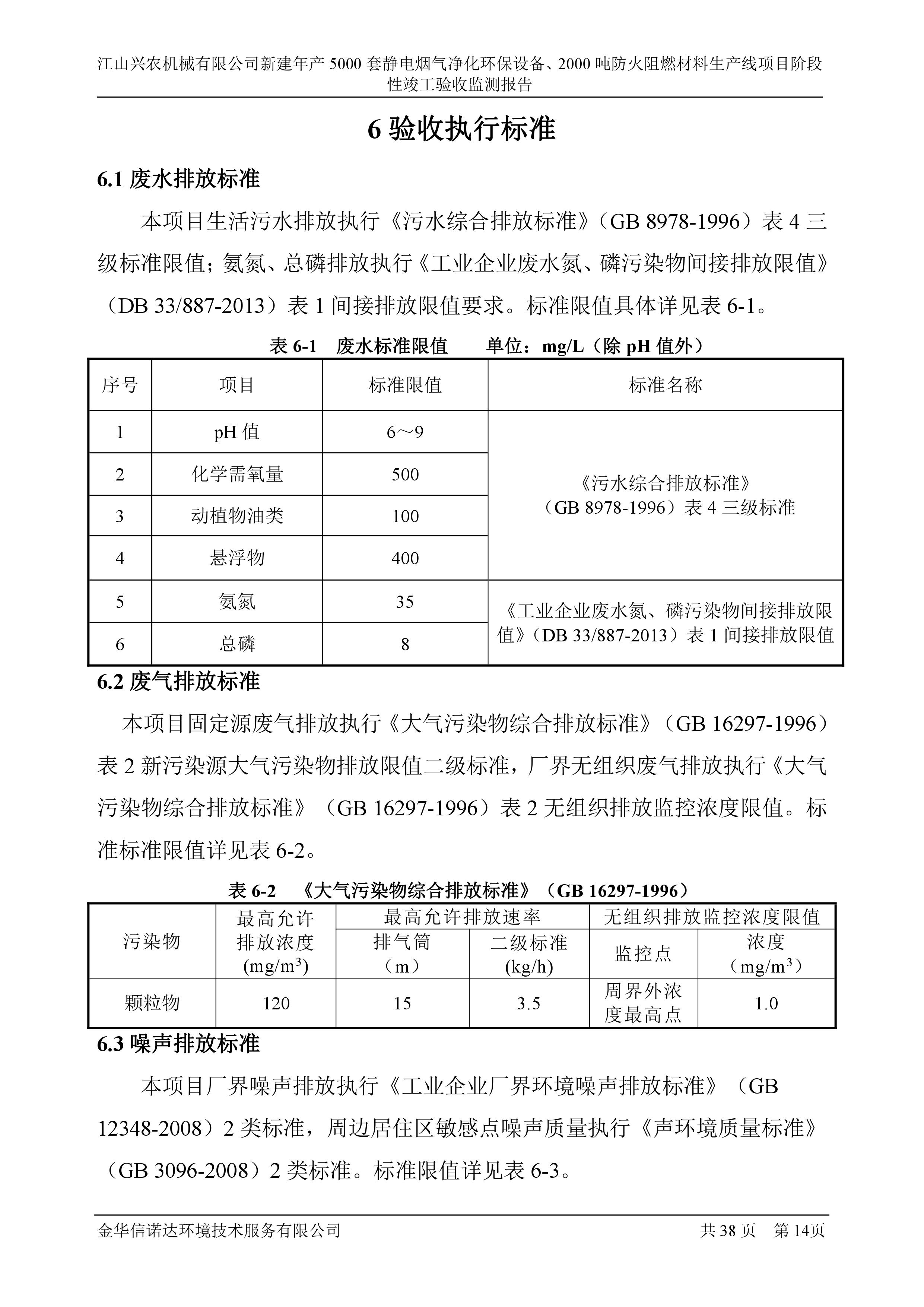 江山興農機械有限公司年產5000套靜電煙氣凈化環保設備、2000噸防火阻燃材料生產線項目階段性竣工環境保護驗收監測報告公示