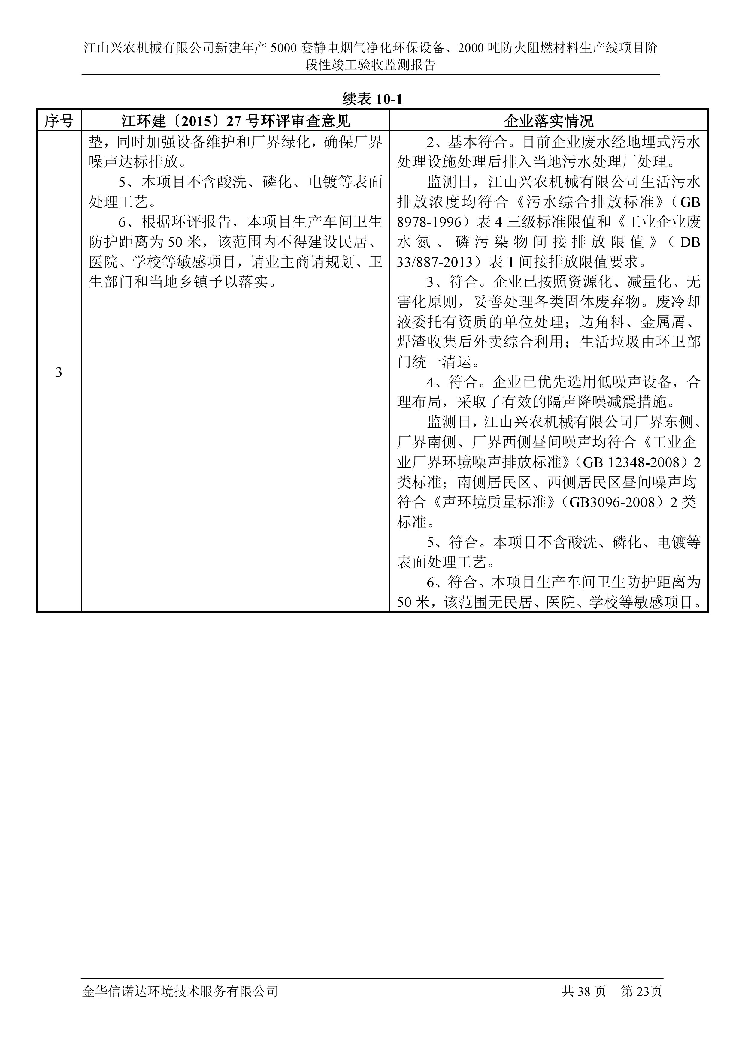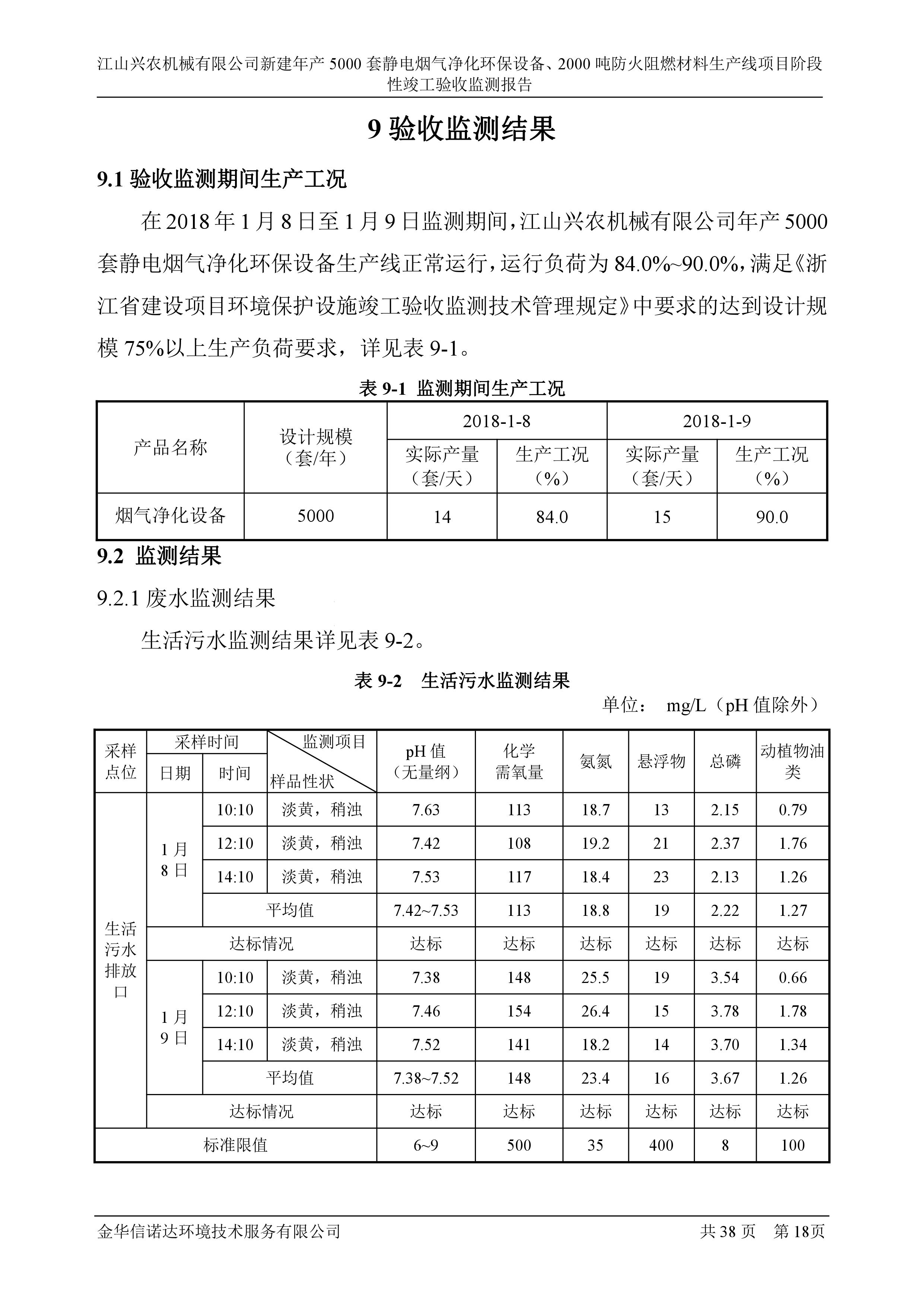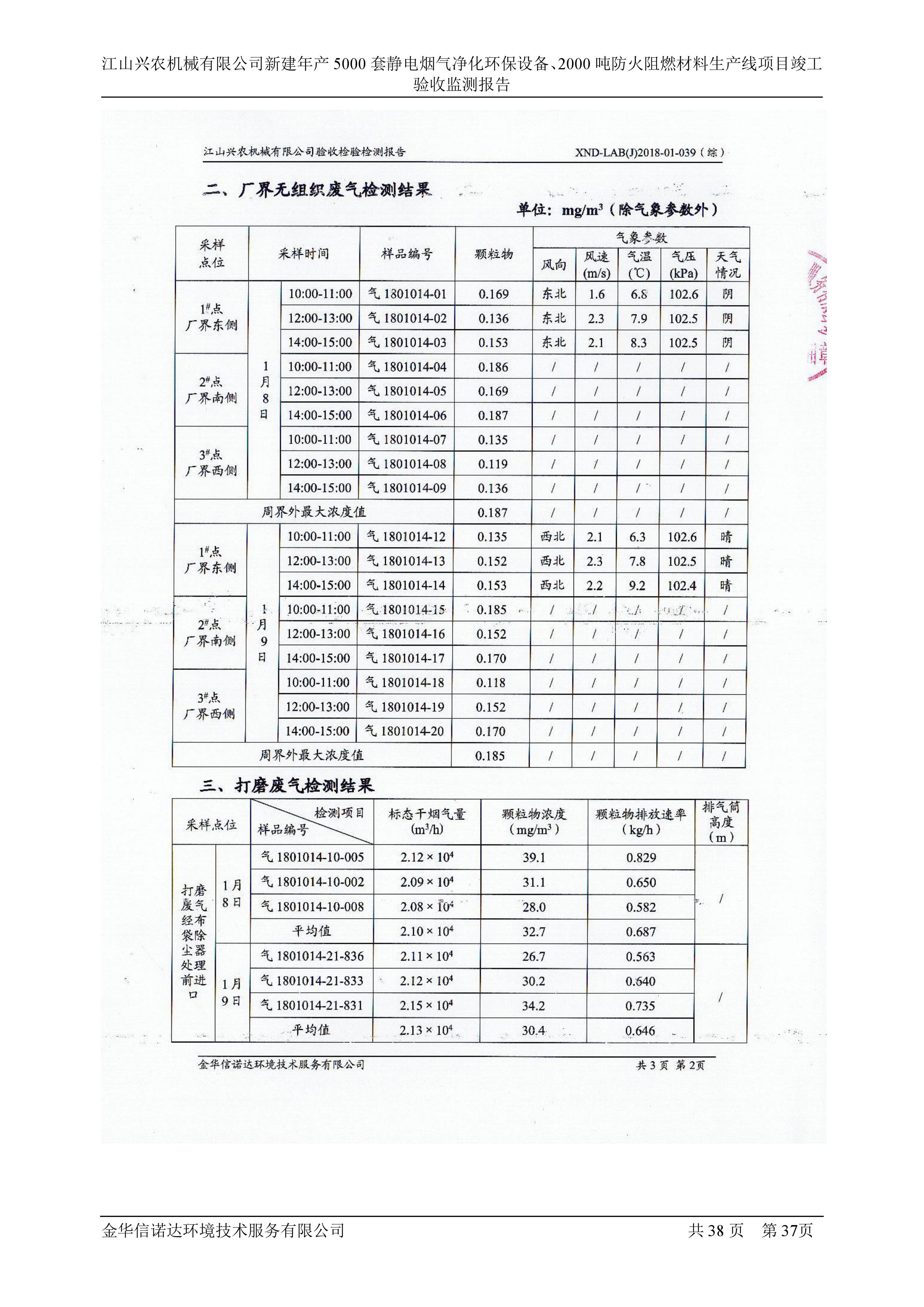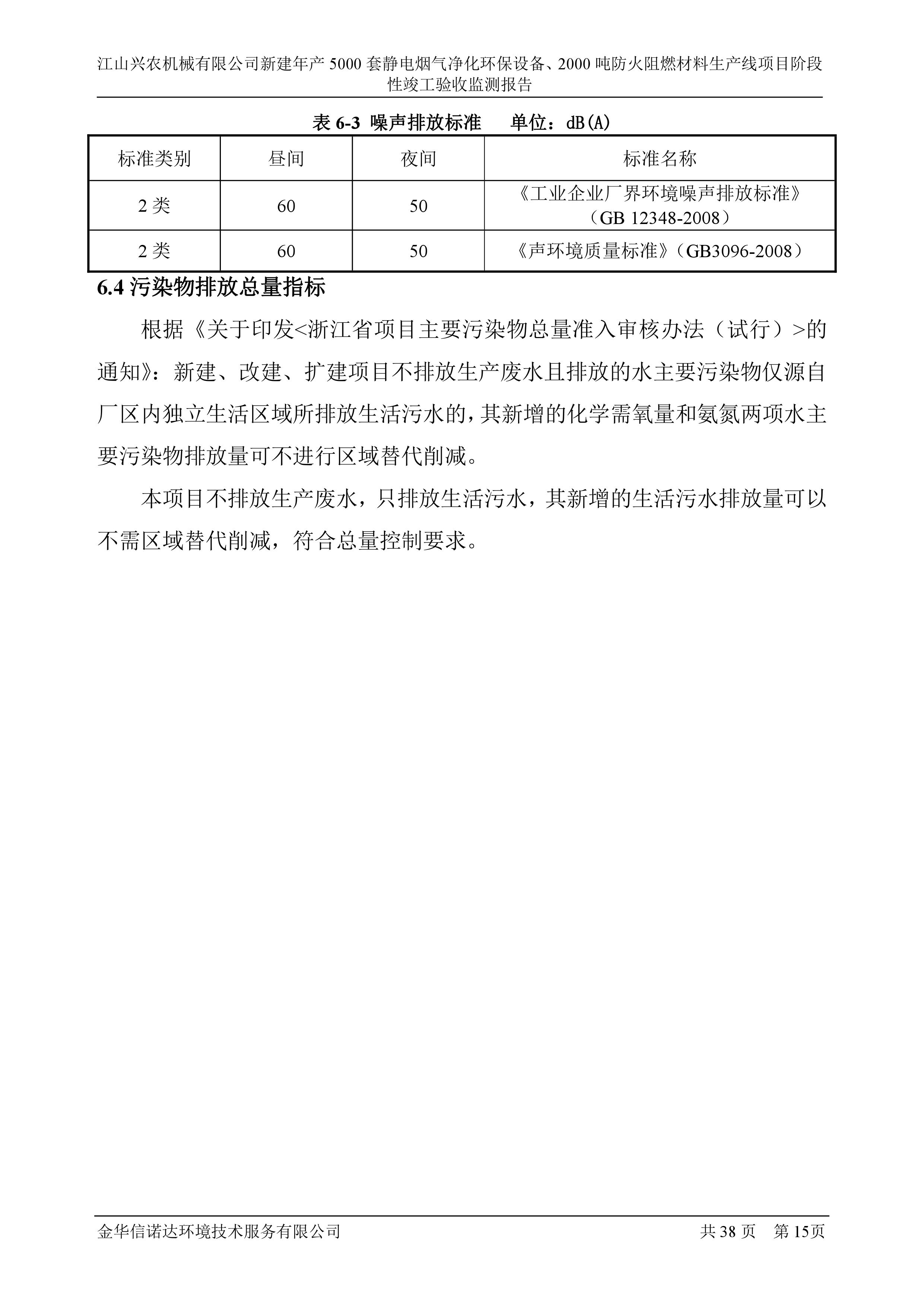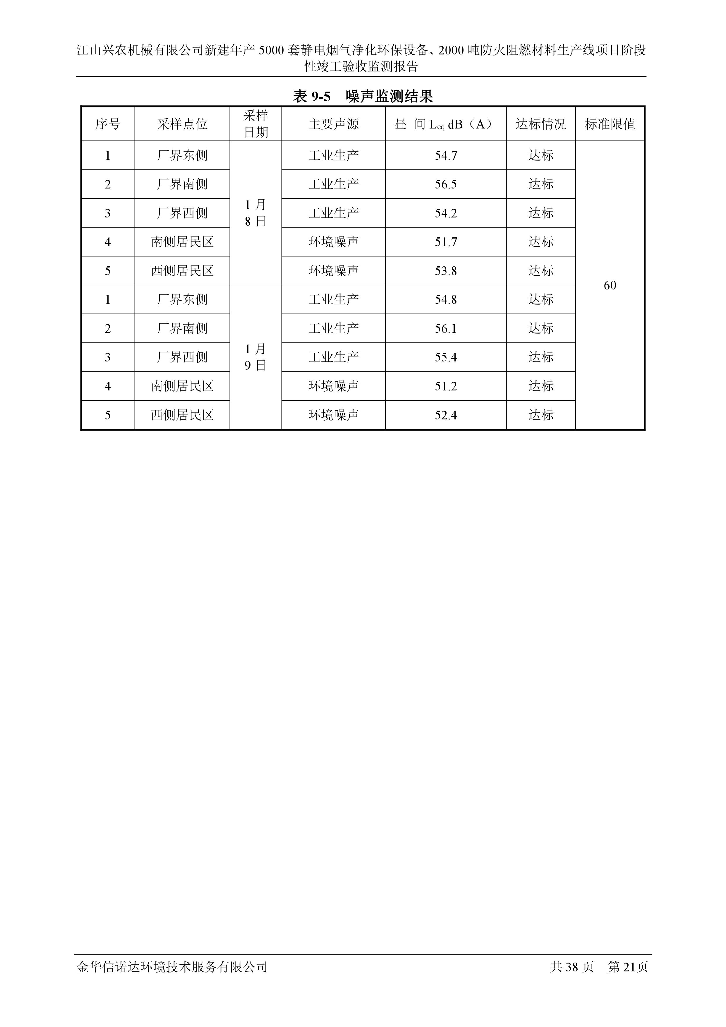 江山興農機械有限公司年產5000套靜電煙氣凈化環保設備、2000噸防火阻燃材料生產線項目階段性竣工環境保護驗收監測報告公示