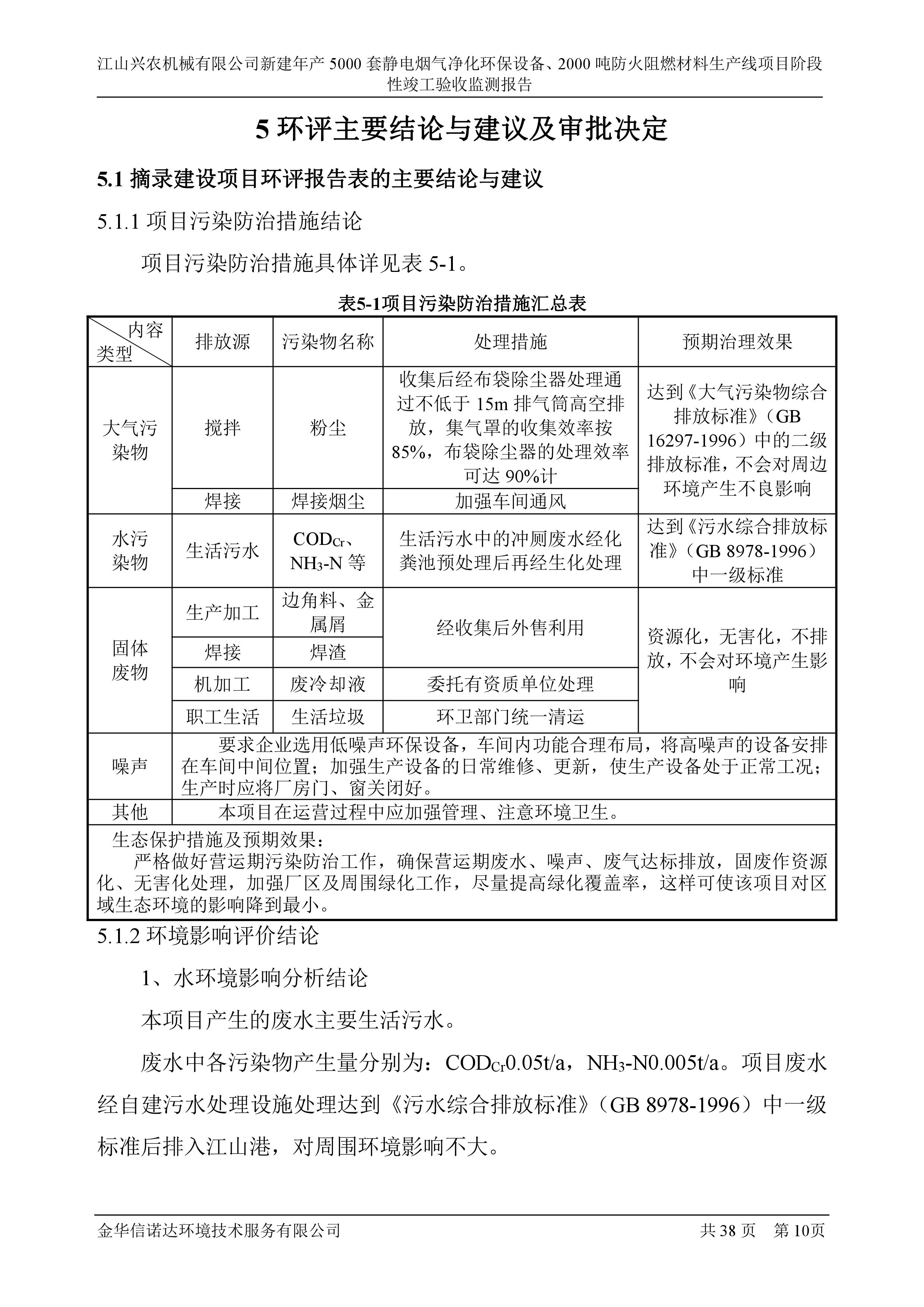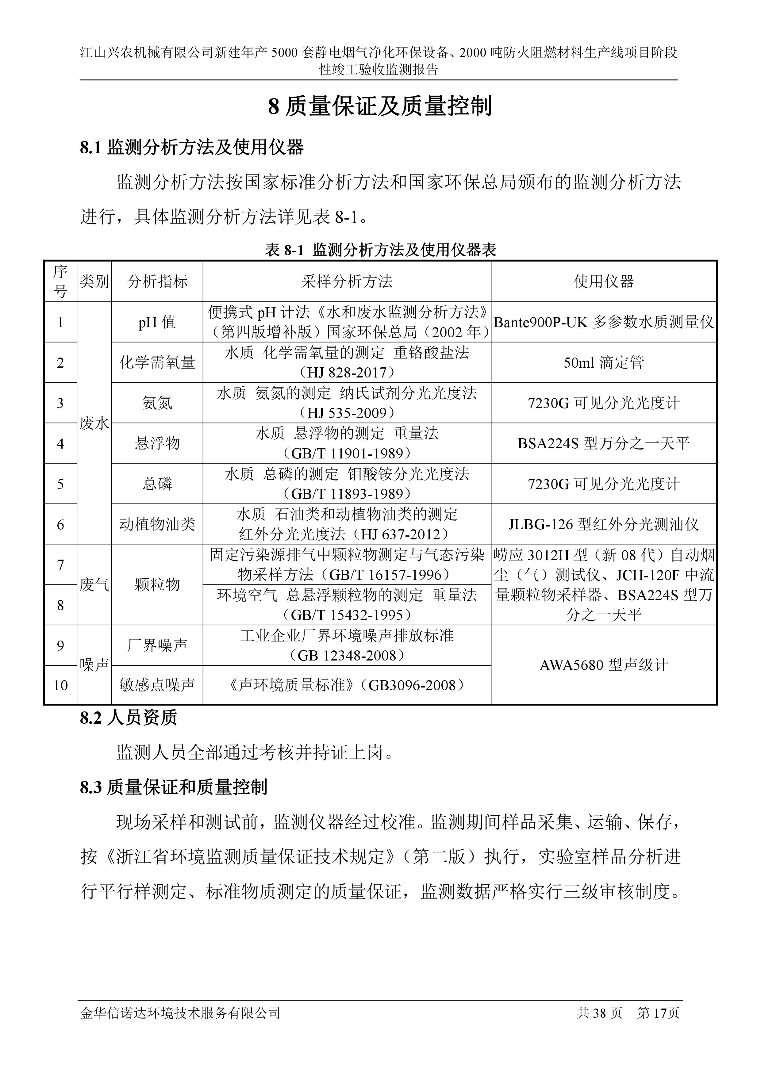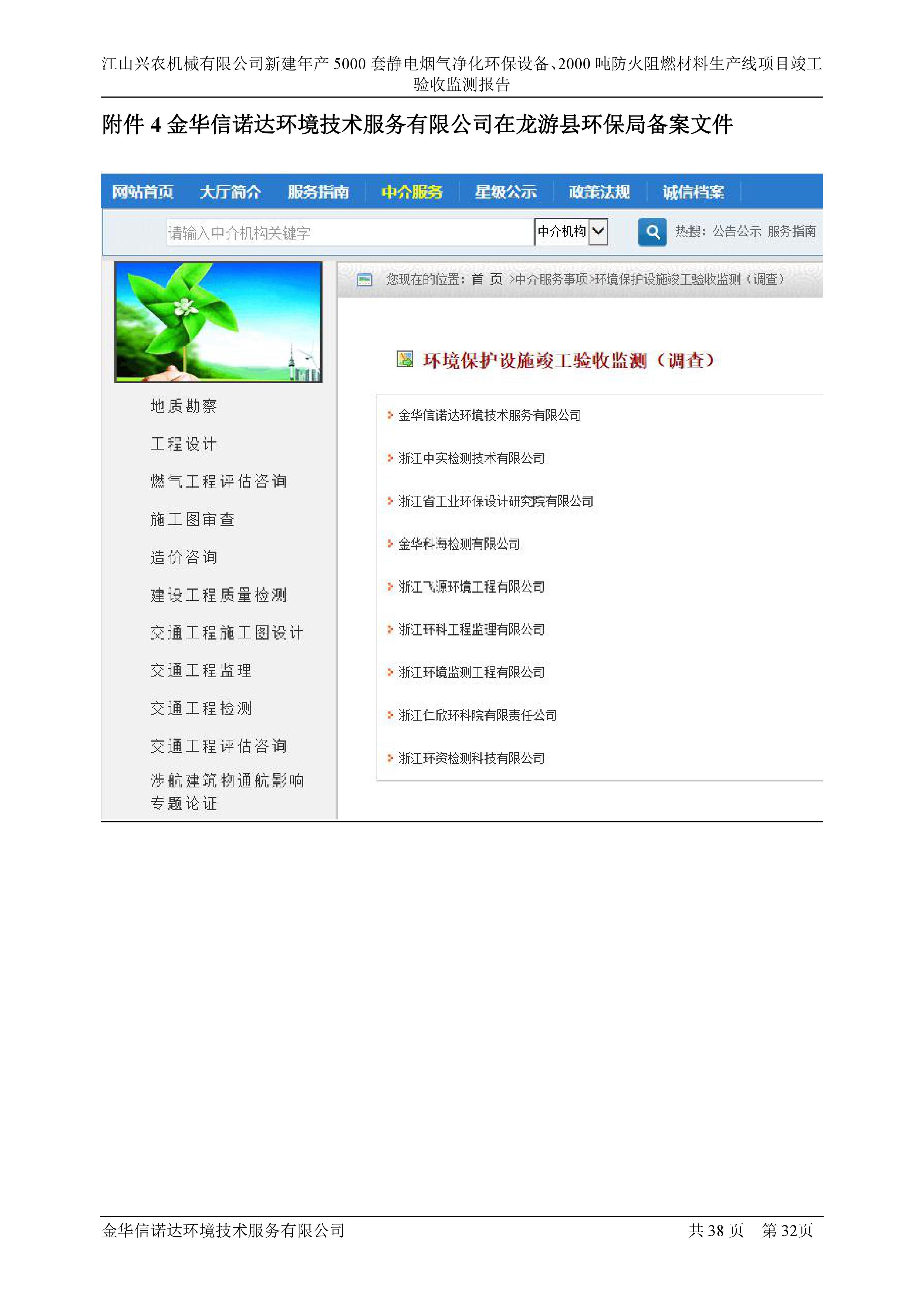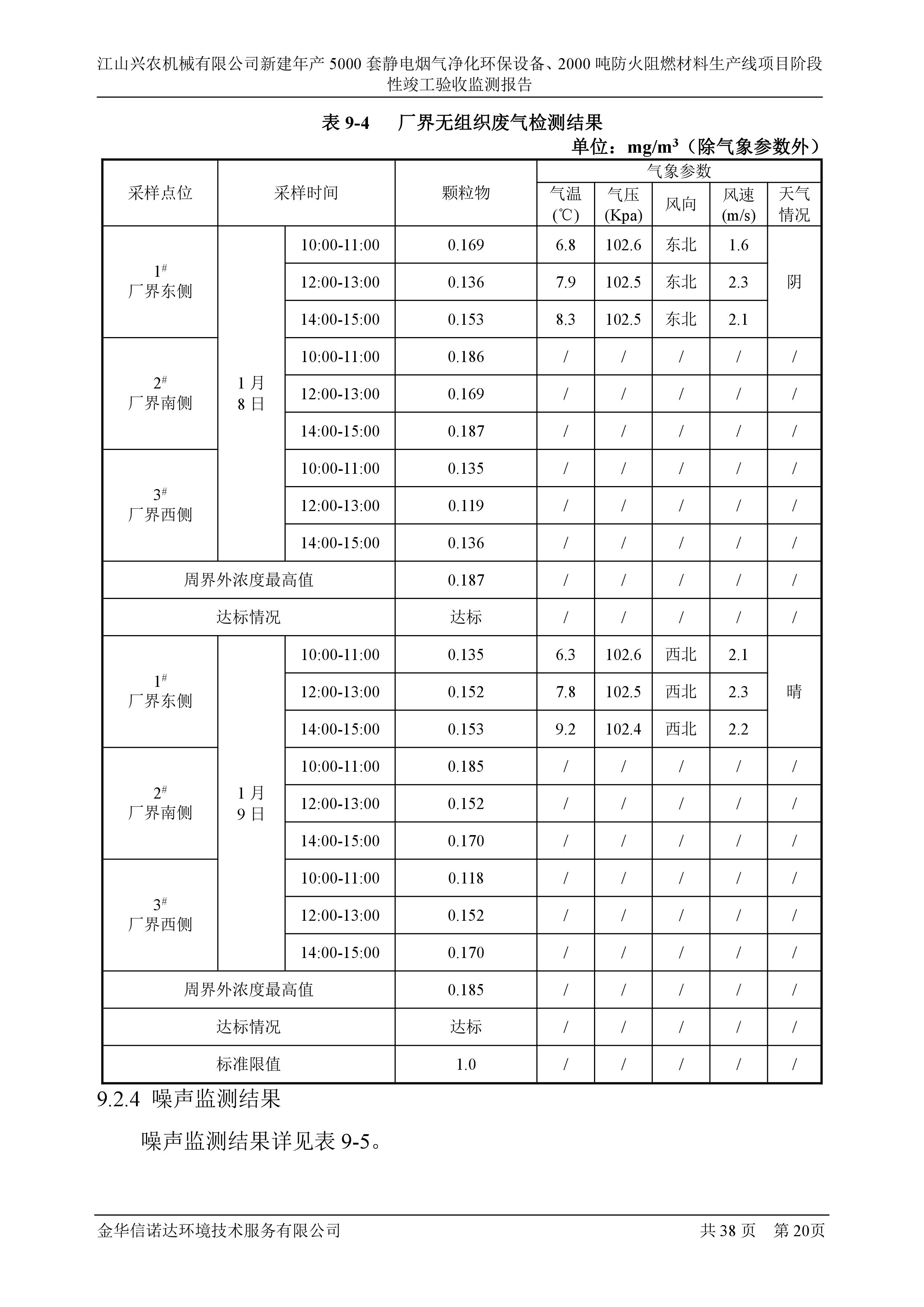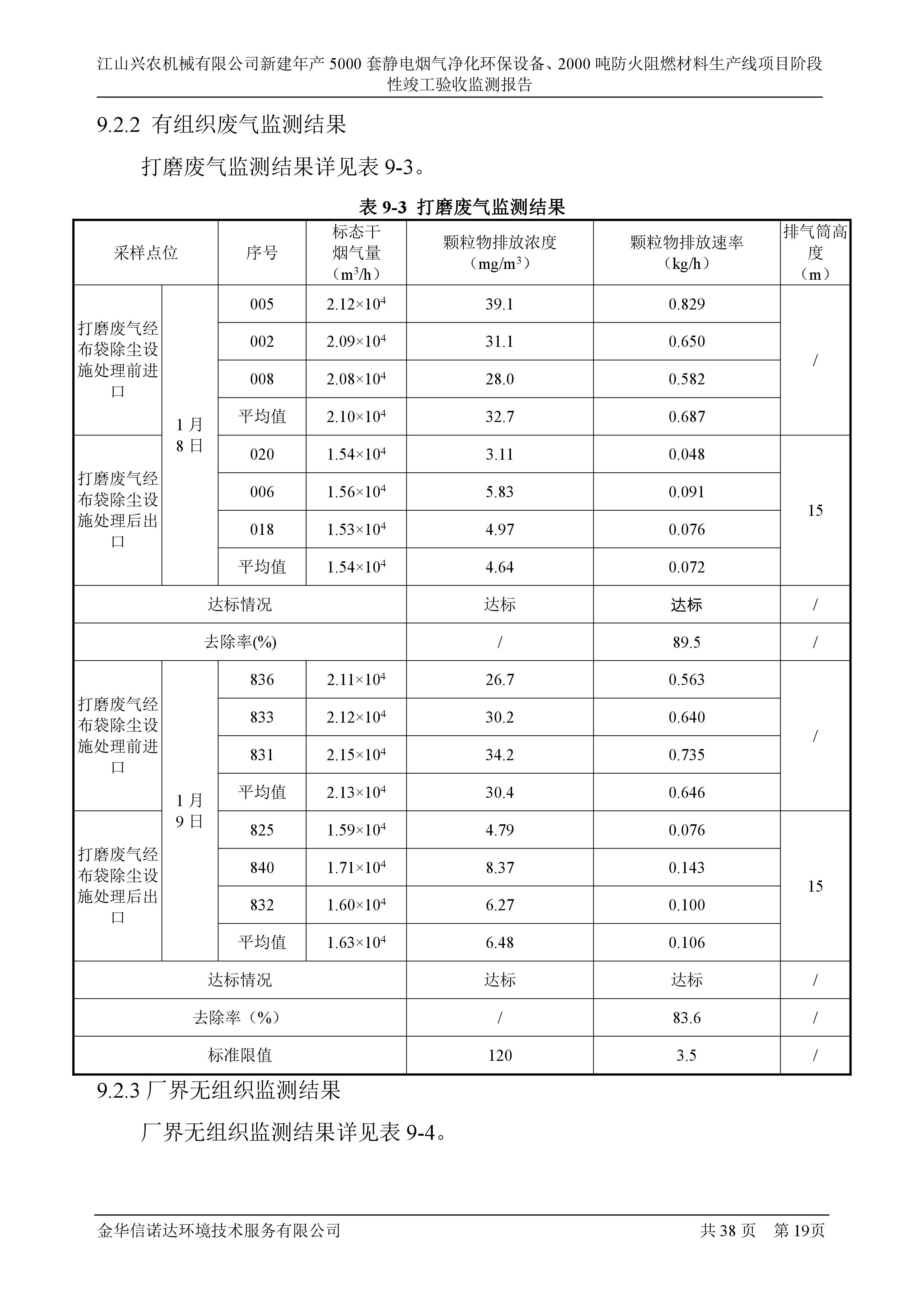 江山興農機械有限公司年產5000套靜電煙氣凈化環保設備、2000噸防火阻燃材料生產線項目階段性竣工環境保護驗收監測報告公示