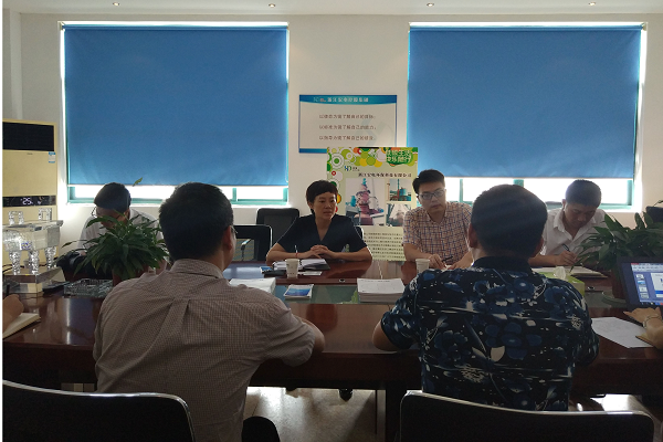2017年8月9日,浙江省經信委企業(yè)規(guī)劃處張莉處長一行在市、區(qū)經信委領導陪同下,來我司走訪調研關于我司在2015年被評為2014年度浙江省新上規(guī)企業(yè)“創(chuàng)業(yè)之星”后公司的發(fā)展狀況(回顧:《浙江省經濟和信息化委員會關于公布2014年度全省新上規(guī)企業(yè)“企業(yè)之星”名單的通知》(浙經信企規(guī)(2015)335號)文件,浙江宏電環(huán)保科技有限公司經過多輪專家評審,省經信委研究決定,榮獲2014年度全省新上規(guī)企業(yè)“企業(yè)之星”稱號),公司董事長、執(zhí)行總裁等陪同。