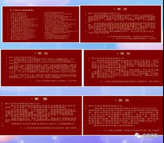 浙江宏電環保股份有限公司創立,眾多環保機構和企業發來了賀電賀信,表示熱烈祝賀,在此一并表示感謝。股份創立藍圖展,乘風破浪再揚帆!宏電,加油!(文/黃永征 攝影/繆少芬)