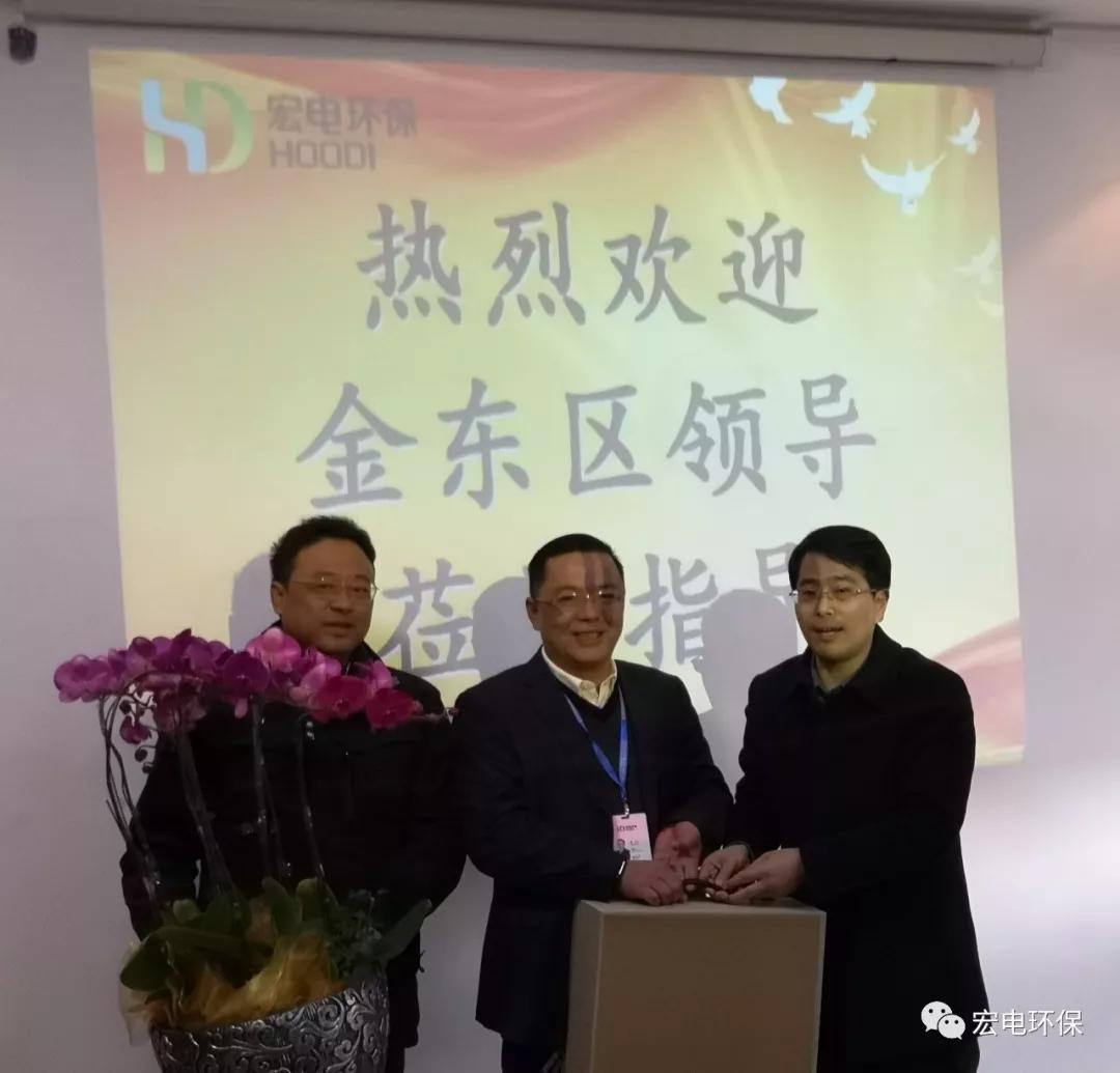 2019年2月12日(農歷正月初八),節后上班第一天,金東區委常委統戰部部長張春陽,副區長葉春成,區政協副主席金艷秀等領導率領金東區和東孝街道相關部門負責同志蒞臨宏電環保走訪指導,為我司帶來了鮮花和禮品,送上了新春的問候和祝福。公司董事長鄒可興、執行總裁俞李偉、副總裁/生態事業部總經理張文廣、常務副總聶慧君等公司領導參加接待陪同。