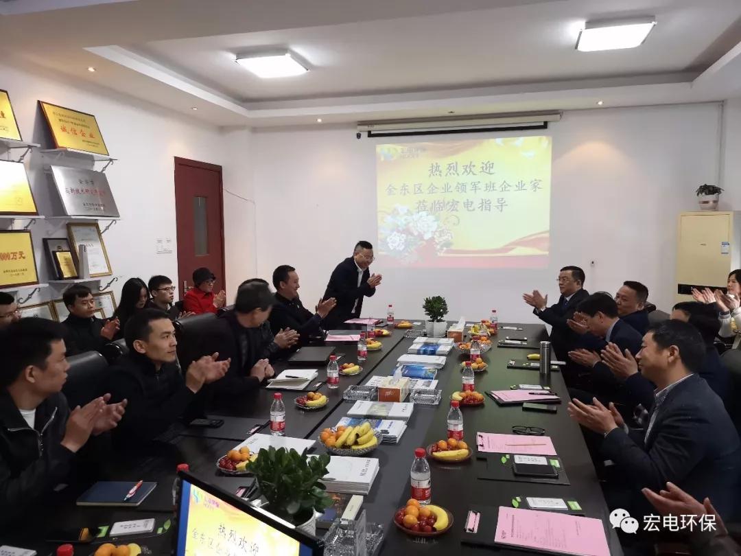 2019年4月3日,浙師大EDP教育中心金東企業領軍班近30位企業家代表走進宏電環保歡聚一堂,大家相互交流,腦力激蕩、碰撞智慧火花,共謀企業高質量發展。
