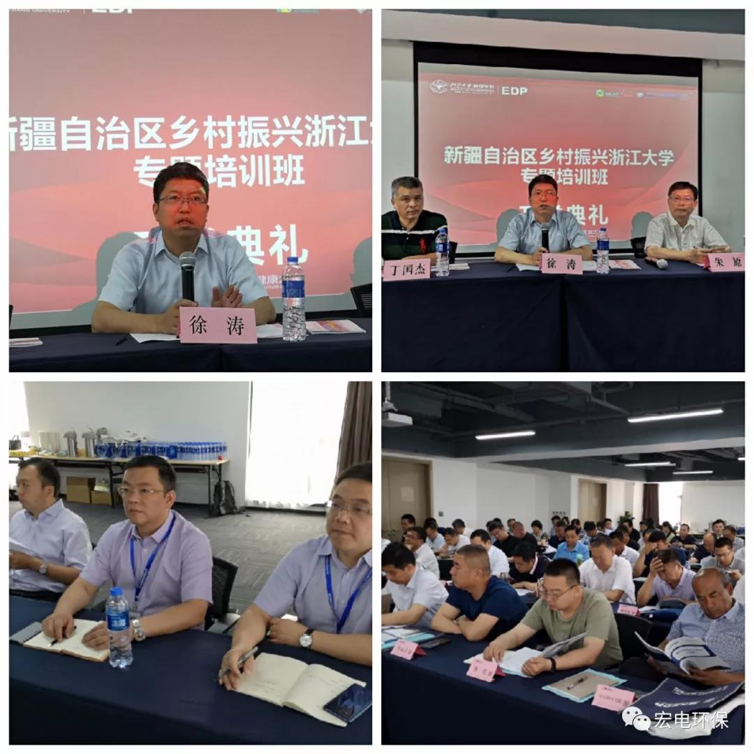 2019年6月16日-20日,為深入學習借鑒浙江省實施“千萬工程”,推進農村人居環境整治和美麗鄉村建設的成功經驗,新疆自治區黨委農辦、農業農村廳在浙江大學舉辦了新疆自治區鄉村振興專題培訓活動,新疆自治區黨委農辦常務副主任、農業農村廳副廳長徐濤親自蒞會并作開班重要講話。浙江大學管理學院黨委書記、副院長朱原致歡迎辭,浙江大學管理學院在職研修部主任丁國杰擔任主持。原浙江省委副秘書長、省農辦主任章文彪在開班首堂課上分享了浙江15年來實施鄉村振興戰略,推進農村人居環境治理,一以貫之,久久為功的好經驗好做法,對習近平生態文明思想在浙江的形成和重要實踐娓娓道來,如數家珍。宏電環保作為積極參與實施浙江“”千萬工程”和“五水共治”工程的龍頭領跑企業,特邀參會。