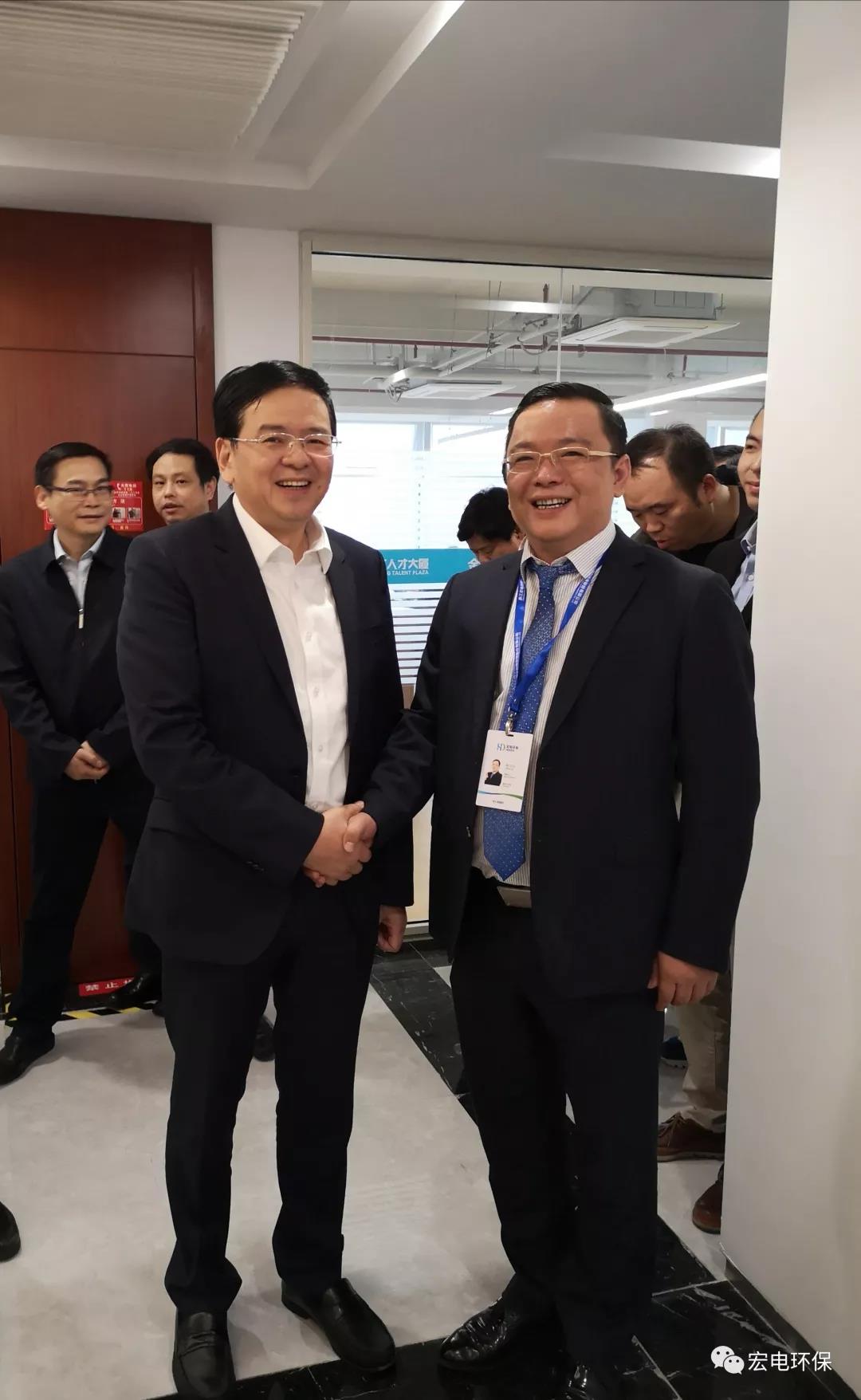 當黃部長了解到“宏電環保”已進入上交所浙江上市培育儲備入庫企業時,他勉勵鄒可興董事長好好努力,開拓進取,爭取讓“宏電股份”成為浙江人才大廈孵化培育起來的首家上市公司,并愉快地與公司董事長鄒可興親切合影以示留念。領導的肯定和期勉,極大的鼓舞了宏電人的信心,激勵著宏電人為實現“宏電夢”繼續奮力拼搏,砥礪前行!